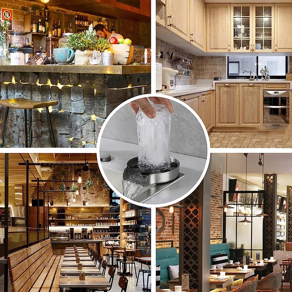 ⏩⏩Широкі застосування: ополіскувач для скла підходить для багатьох місць, ополіскувача для чашок великого діаметру 5,12 дюйма (приблизно 13 см) достатньо для ополіскування більшості посуд для пиття з діаметром отвору 4,33 дюйма (прибл. 11 см). Включно з келихами для вина, келихами для шампанського, дитячими пляшечками, келихами для качки, чашками для кави, спортивними пляшками для води, коктейльними шейкерами, баночками тощо. Ідеально підходить для кухонь, барів, клубів, кафе, ресторанів тощо.