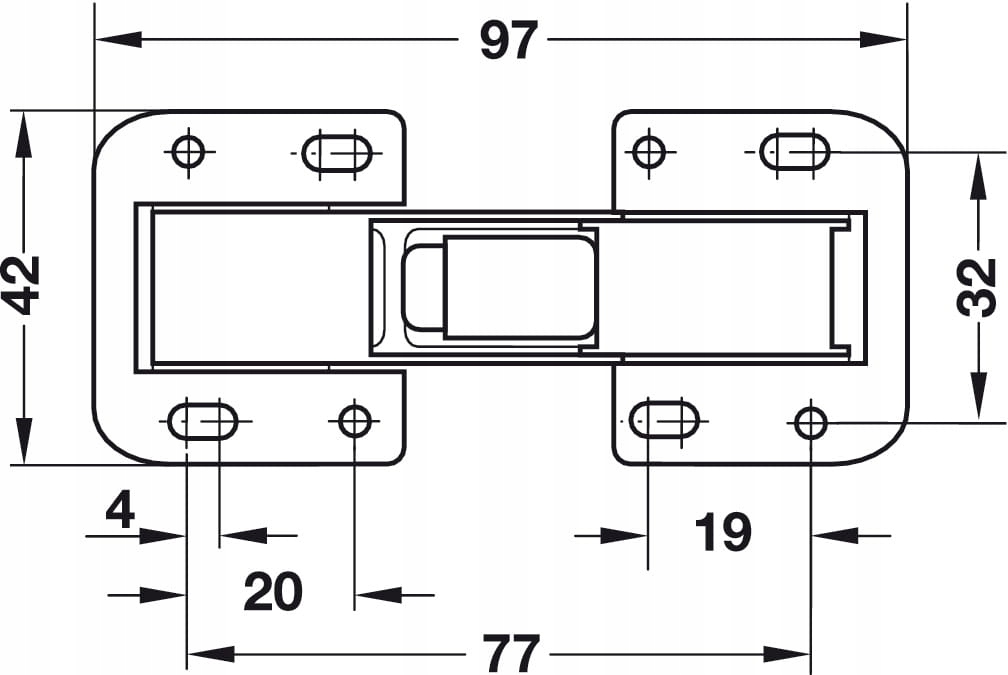 Петлі з оцинкованої сталі з кутом розкриття 90°. Регулювання сторони та глибини через довгі отвори з автоматичним замикаючим механізмом. Для дверей товщиною 16 мм і товщиною бічних стінок 16 - 22 мм.