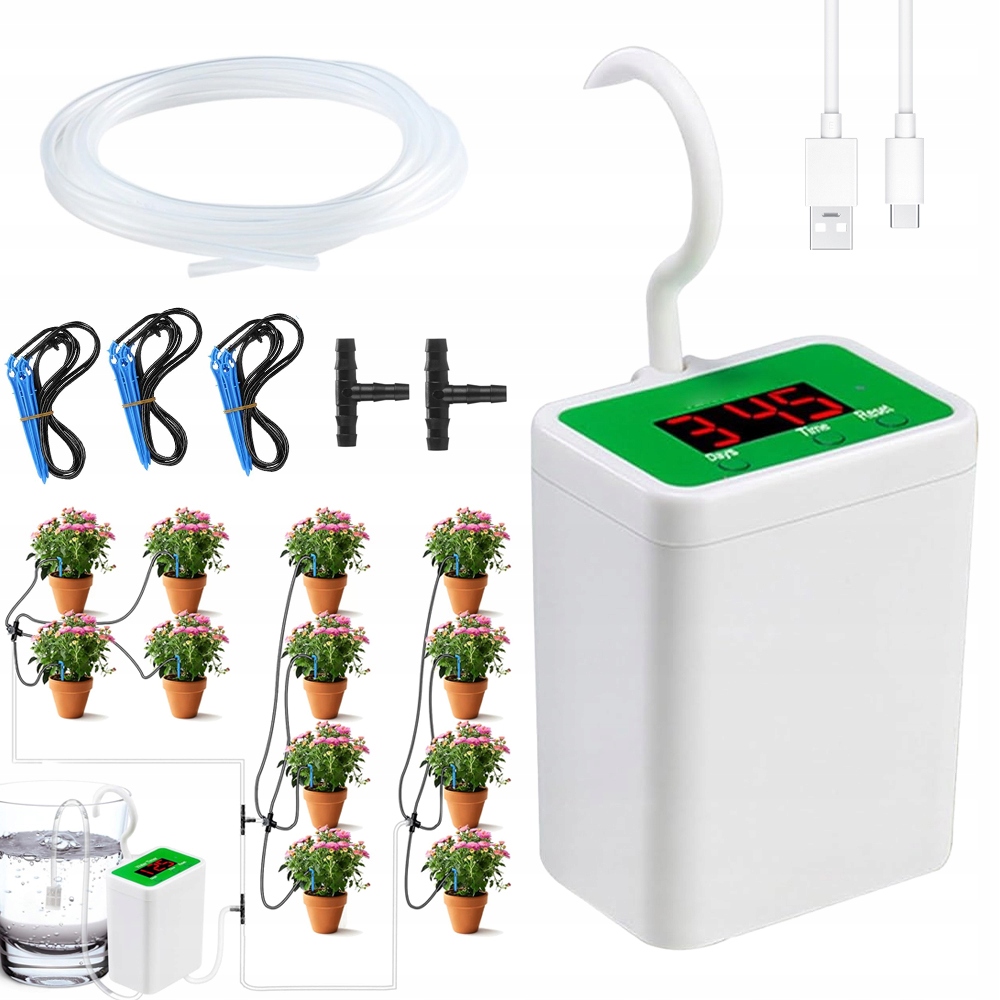 - Включає 1 балконну систему поливу, 1 USB-кабель, 1 2-метрову чорну трубку, 1 фільтр, 2 трійники, 3 крапельні стрілки.