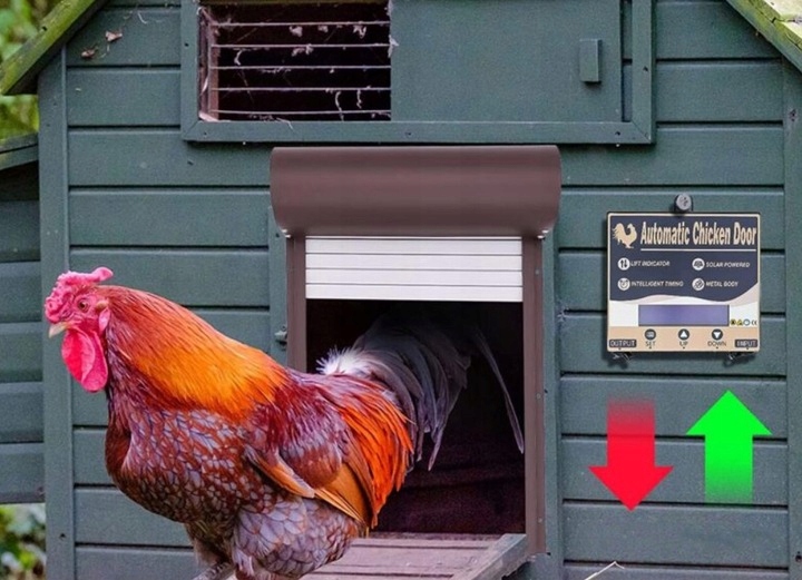 підняті, електричні двері до курки - це інтелектуальне рішення, яке автоматично підніме двері у фіксований час, залежно від налаштувань, вибраних користувачем. Це відмінний продукт, який економить час і догляд за належним щоденним ритмом птиці та захисту інвентаризації від зловмисників, , таких як лисиці або Мартен.