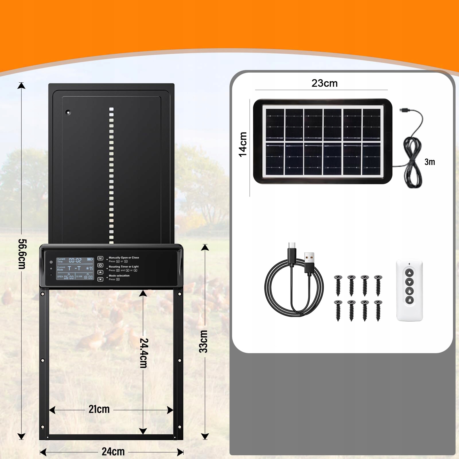 【Світлодіодний дисплей】: зручний інтерфейс для будь-якого віку. Автоматичні двері для курятників з великою поверхнею, які дозволяють точно налаштувати час відкриття і закриття дверей і яскравість освітлення, що робить їх більш зручними у використанні. Незалежно від того, чи ви технічно підкований, чи новачок, пристрій розроблено таким чином, щоб підійти користувачам будь-якого віку та гарантувати, що навіть старші користувачі зможуть з легкістю ним керувати. Примітка. Якщо автоматичні дверцята курчати розряджаються, вам потрібно буде скинути наведені вище дані про відкриття та закриття дверей, коли акумулятор буде повністю заряджено.