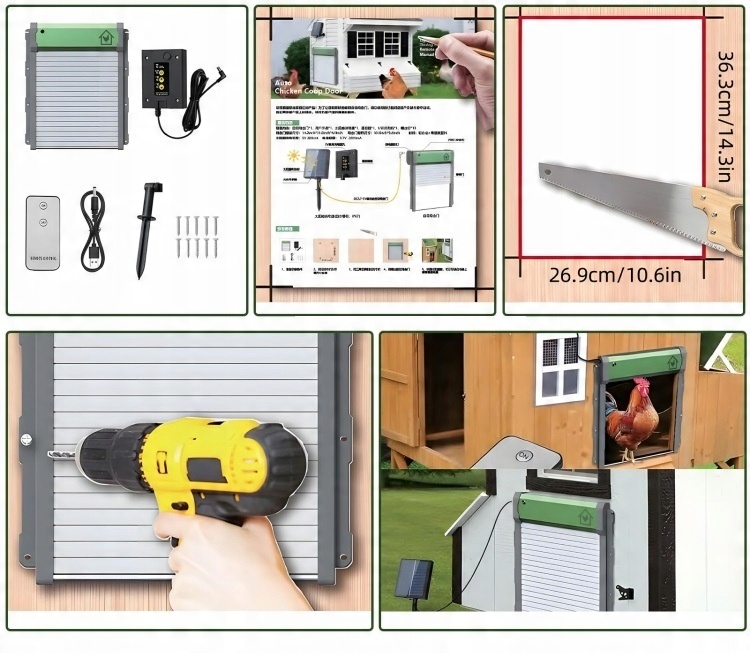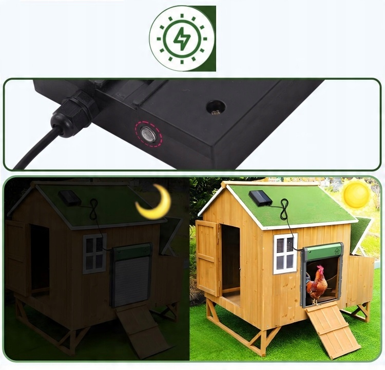 Ми пропонуємо сучасні автоматичні дверей куренів, які ідеально поєднують функціональність з інноваційним дизайном. Завдяки побудованій сонячній панелі наші двері забезпечують надійне джерело живлення, усуваючи необхідність електричних кабелів та акумуляторів. пульт дистанційного керування та датчик світла зробіть операцію надзвичайно простою та зручною. двері відкриваються автоматично на світанку , а закритись у сутінках , що дозволяє підтримувати безпеку птахів у будь -який час. Виготовлені з високоякісних матеріалів , вони стійкі до погодних умов, що гарантує їх тривалове використання.