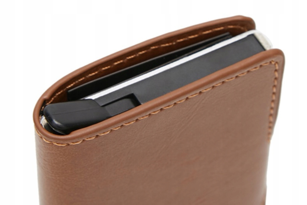 Гаманець виготовлено з високоякісної екологічної шкіри в поєднанні з внутрішнім футляром, повністю виготовленим із легкого алюмінію.