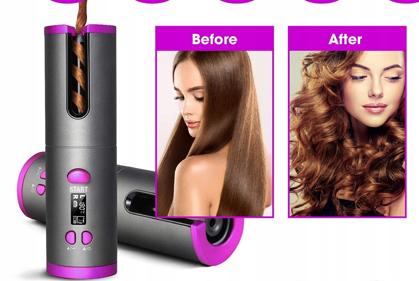 Бездротова автоматична плойка для волосся дозволяє накручувати волосся навіть поза домом. Плойка має автоматичний обертовий ролик, який створює красиві кучері або хвилі.