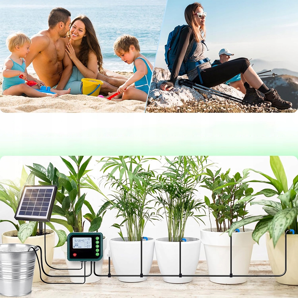 ✅automatic сонячна зрошувальна система встановлює пристрій проти вогню з водною розеткою, щоб запобігти потягу, коли резервуар для води вище, ніж рослини. Коли рівень води низький, система зрошення сонячної енергії видасть звуковий сигнал, щоб нагадати вам про додавання води; Коли рівень води низький або зонд заблокований, він також дасть звуковий сигнал. Просто додайте воду або очистіть зонд.