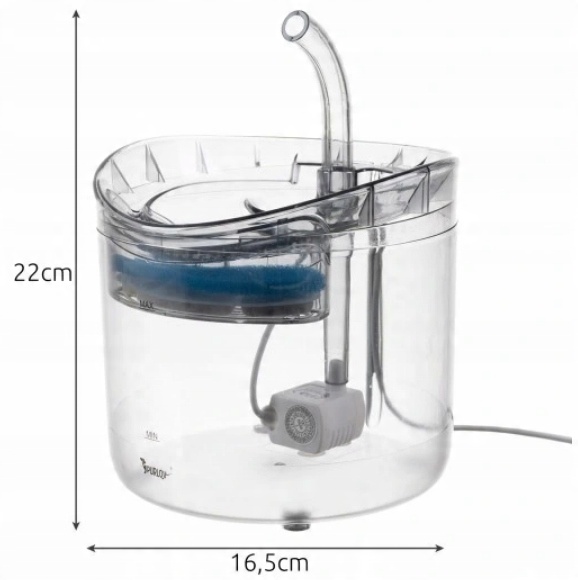 - СПЕЦИФІКАЦІЯ - колір: прозорий; місткість: 2 л; місткість чашки: 120 мл; фільтр: 3 шари; кількість режимів потоку води: 2; шум: 40 дБ; напруга: 5В; довжина кабелю: 195 см; розміри: 16,5 х 22 см; вага: 0,488 кг; вага в упаковці 0,597 кг