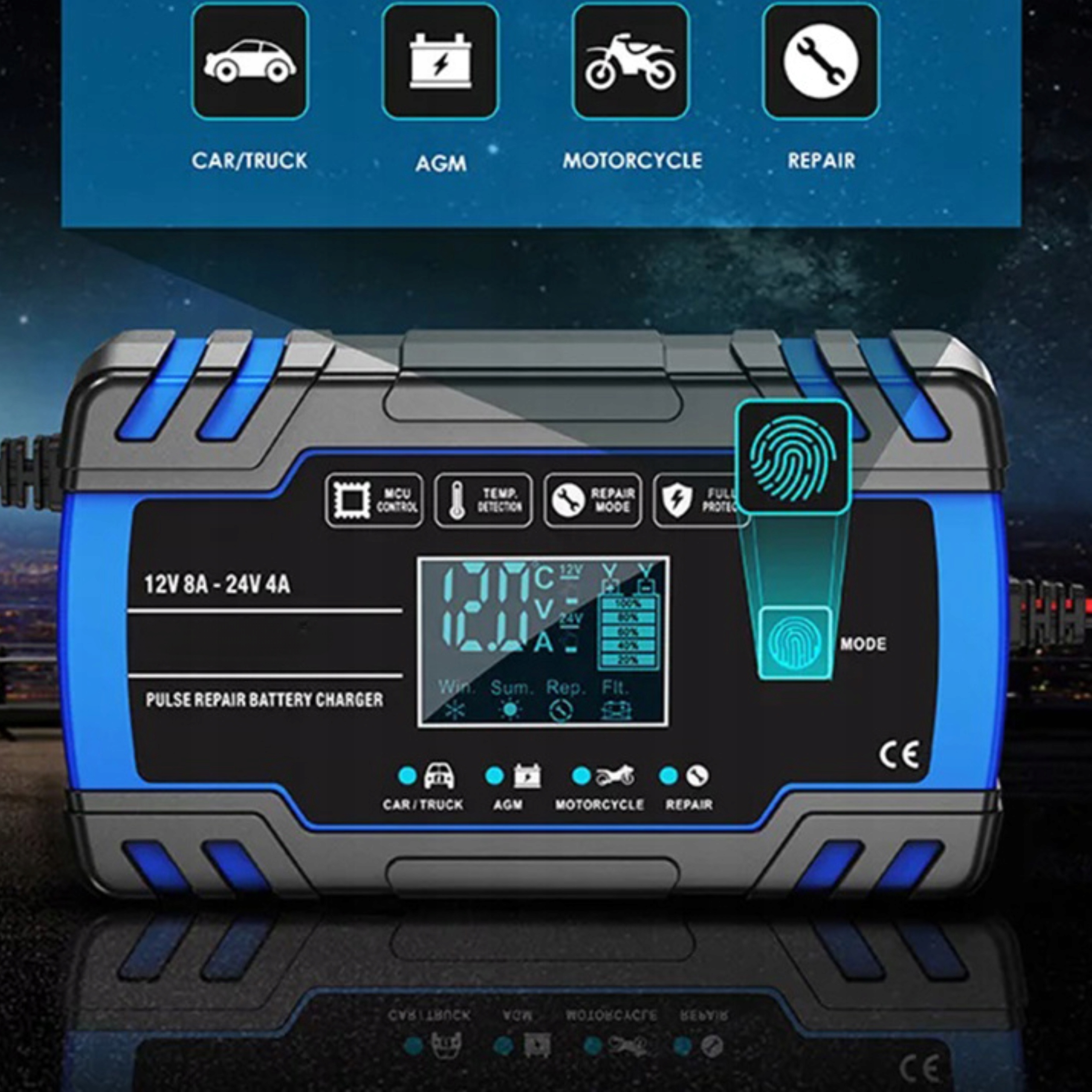 Автоматичний інтелектуальний РК -зарядний пристрій 12В/24V 8A