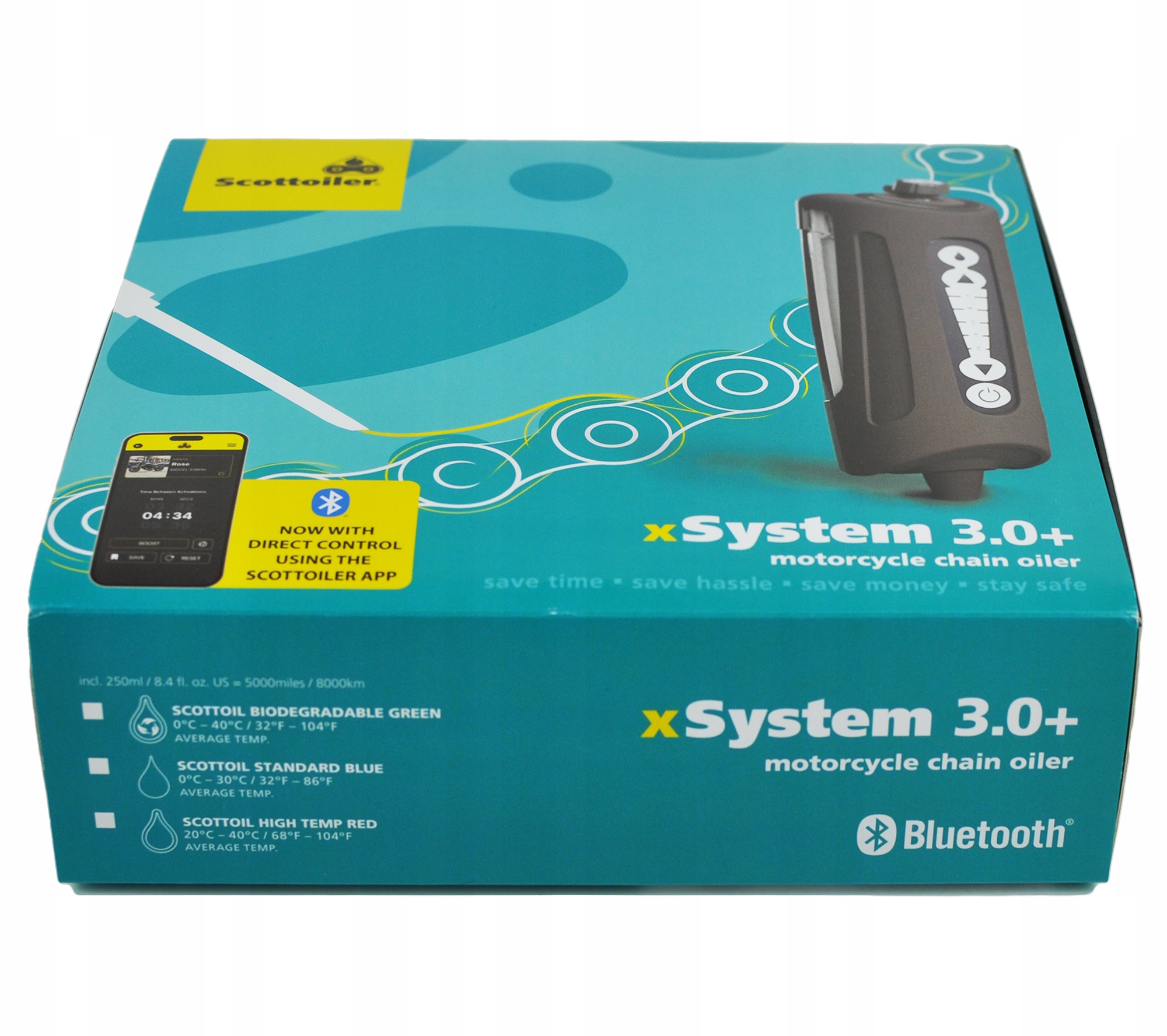 для мотоциклістів, які шукають ще більший контроль, Xsystem 3.0+ пропонує підключення Bluetooth , завдяки якому він сумісний із безкоштовним додатком Scottoiler.