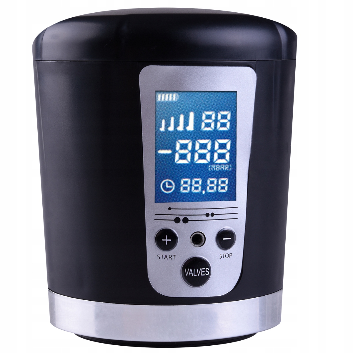 - Електронна насосна машина, оснащена 4 рівнями потужності всмоктування (-125 Мбар, -200 Мбар, -275 Мбар, -350 Мбар), РК-дисплеєм, кнопкою швидкого скидання тиску, таймером
