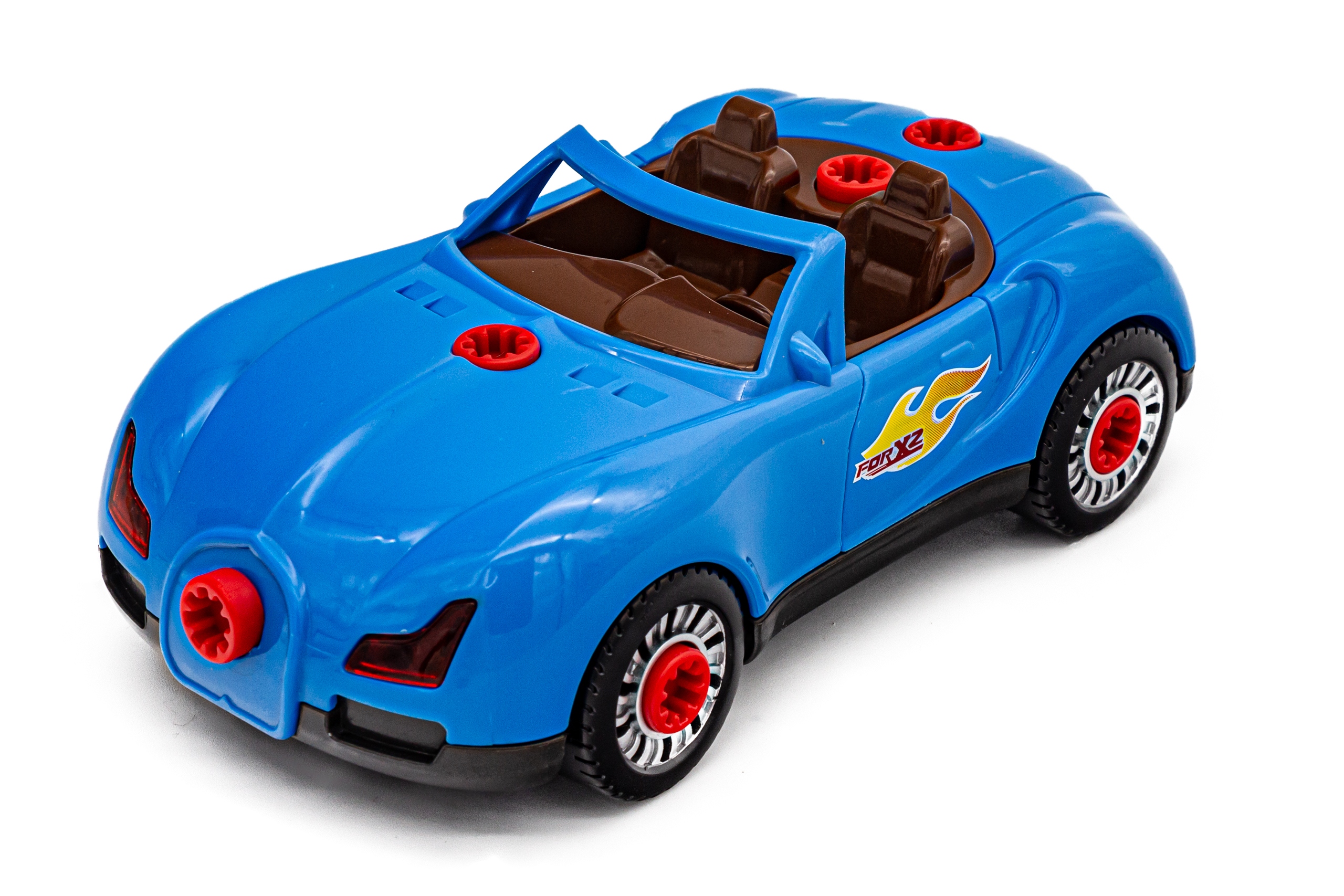 Автомобіль у розібраному вигляді є ідеальною іграшкою для маленьких любителів саморобки. У набір входить багато частин, серед яких: диски, дах, бампери, гвинти. Дитина може їх вільно крутити і відкручувати, модифікуючи свій транспортний засіб.