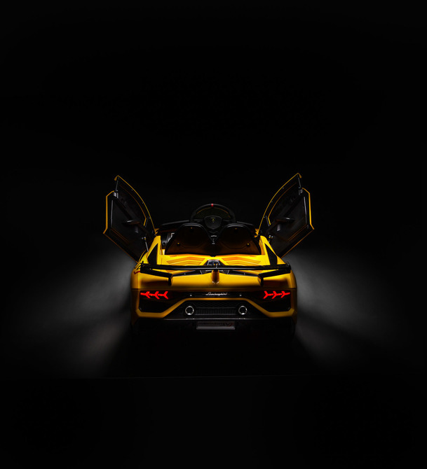 Автомобіль на акумуляторі Toyz Lamborghini Aventador SVJ — це ліцензована версія надзвичайного суперкара, який подарує найменшим незабутні враження. Динамічна лінія кузова, характерні ліхтарі та двері, що відкриваються вгору, – лише деякі елементи, які відображають унікальність Lamborghini. Інтер'єр зроблений з увагою до деталей. Сидіння виготовлене з високоякісної екошкіри та увінчане золотим логотипом культового бренду, а на кермі є кнопки звукового сигналу та мелодії. Крім того, позаду є відсік для зберігання іграшок.