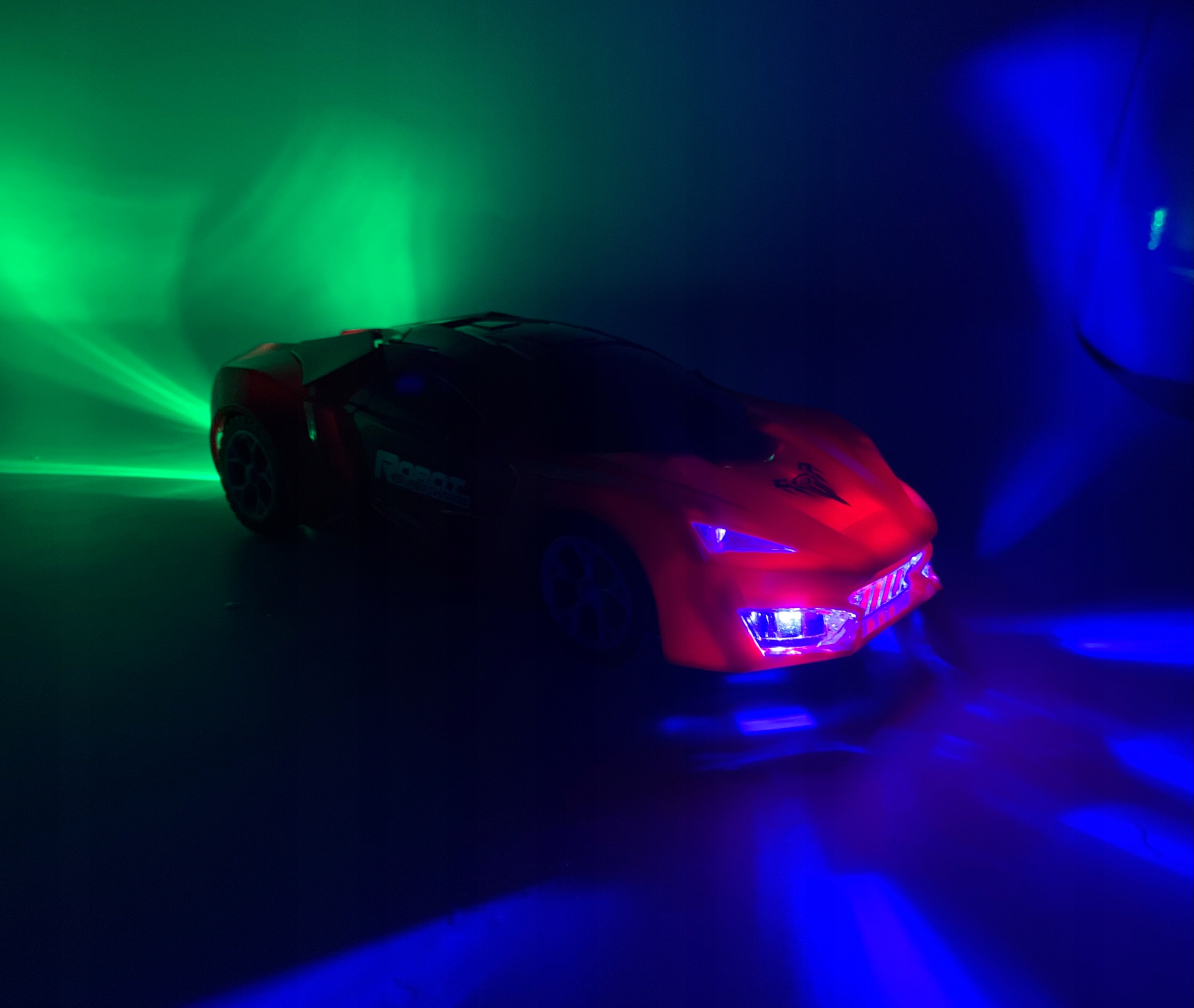 Бігаючий і сяючий автомобіль-робот на акумуляторі