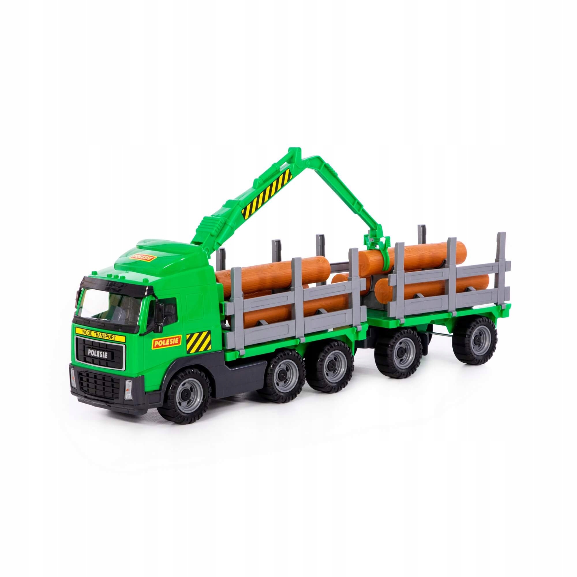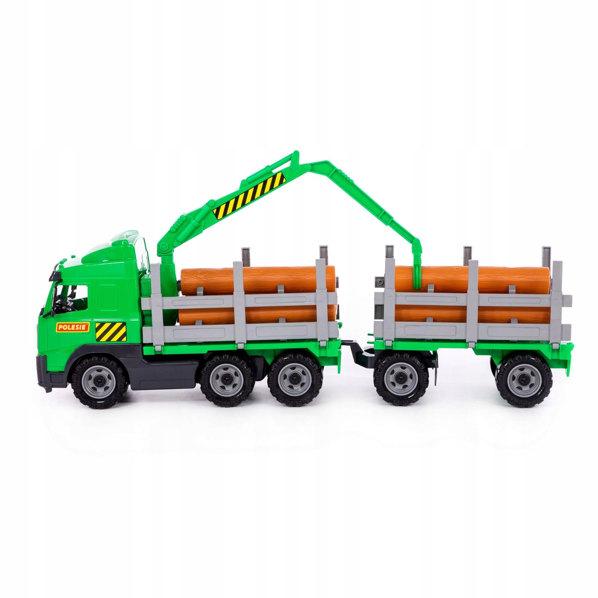 У напівприймача є місце для транспортування журналів деревини, які входять до набору. На транспортному засобі розміщується спеціальний руховий кран, який дозволяє перевозити довго з машини та для автомобіля. Набір включає додатковий трейлер з журналами