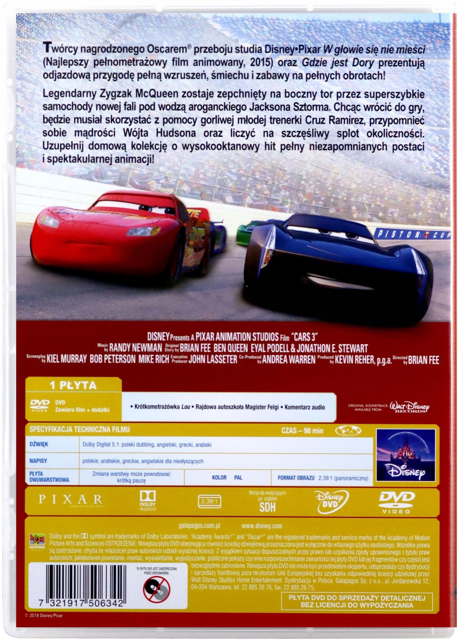 "Високооктановий хіт від студії Disney-Pixar! Вражаюча анімація, що живиться серцем і швидкісними веселощами. Легендарний Блискавка МакКвін витіснений на узбіччя новим поколінням швидкісні гонщики на чолі з зарозумілим Джексоном Штормом. Щоб повернутися до гри, йому доведеться скористатися допомогою завзятого тренера Круза Раміреза, мудрістю мера Хадсона та розраховувати на вдалий розвиток подій.