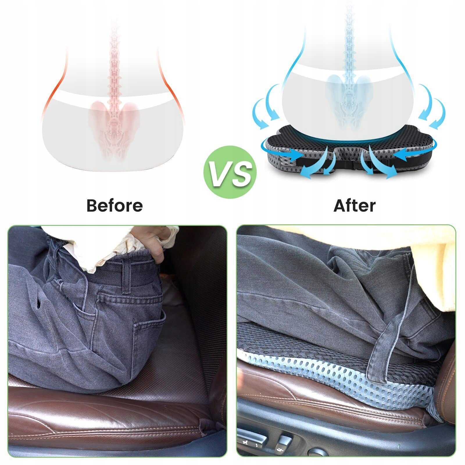 anti -slip гумовий дно та регульований ремінь забезпечують стабільність та безпеку подушки. Це не буде рухатися під час руху чи попиту. Дихаюча 4D сітчаста тканина має високу щільність, високу дихання та високу еластичність. Знімну кришку можна промивати вручну. Примітка: Подушка для автокрісла буде доставлена, але вміє перше використання.