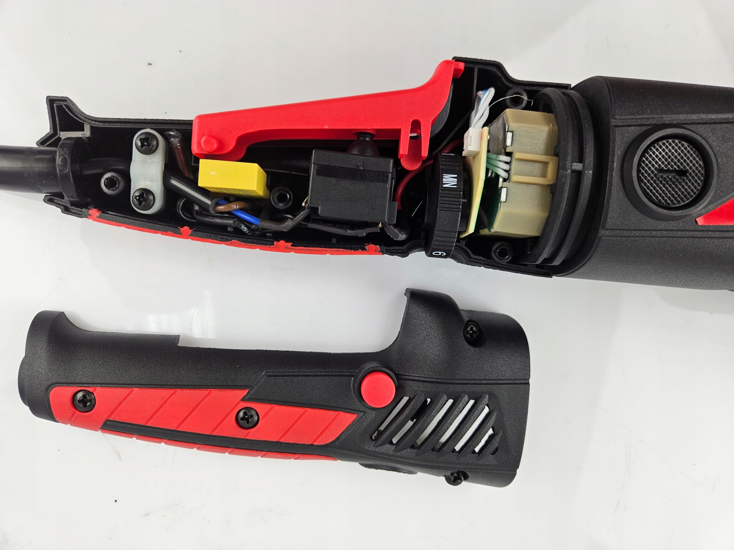 Швидкість обертання можна точно регулювати (6 градусів) по всьому весь діапазон регулювання від 2100-5000 обертів на хвилину за допомогою ручки, розташованої на ручці полірувальної машини.