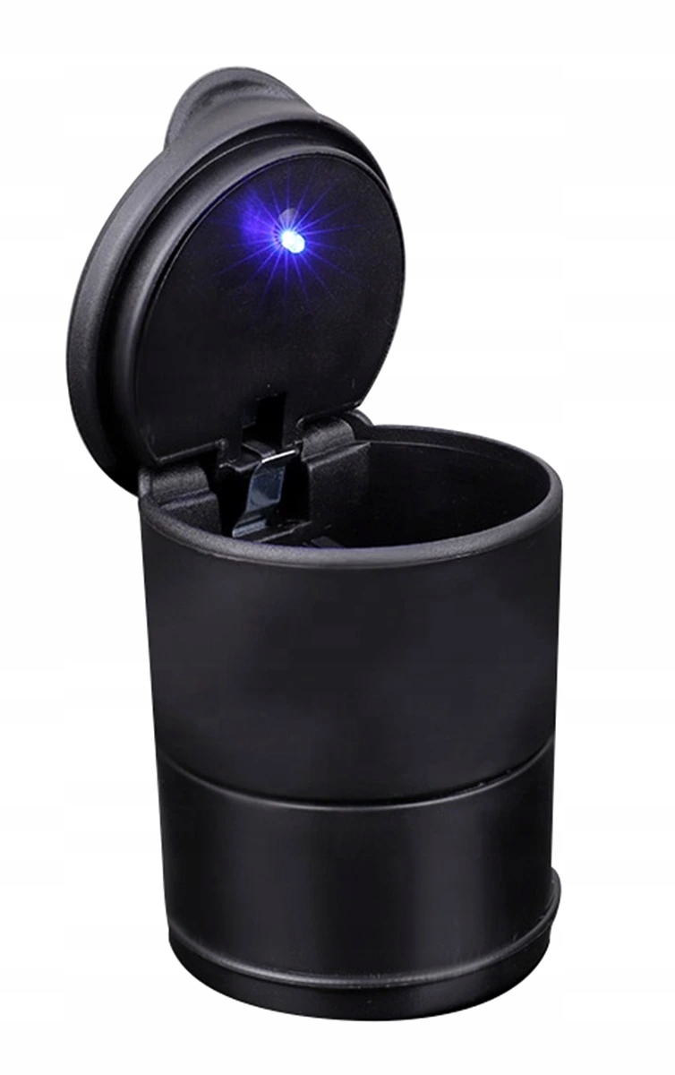 Компактна автомобільна попільничка з естетичною синьою світлодіодною підсвіткою. Він також чудово підійде як автомобільне сміттєве відро для дрібного сміття або як додаткова попільничка вдома! Світлодіодне підсвічування, що автоматично активується, полегшує користування попільничкою вночі, а закрита кришка запобігає поширенню попелу та неприємних запахів в околицях! Він ідеально підходить до тримача для головного убору вашого автомобіля, тож міцно тримається на місці під час водіння!