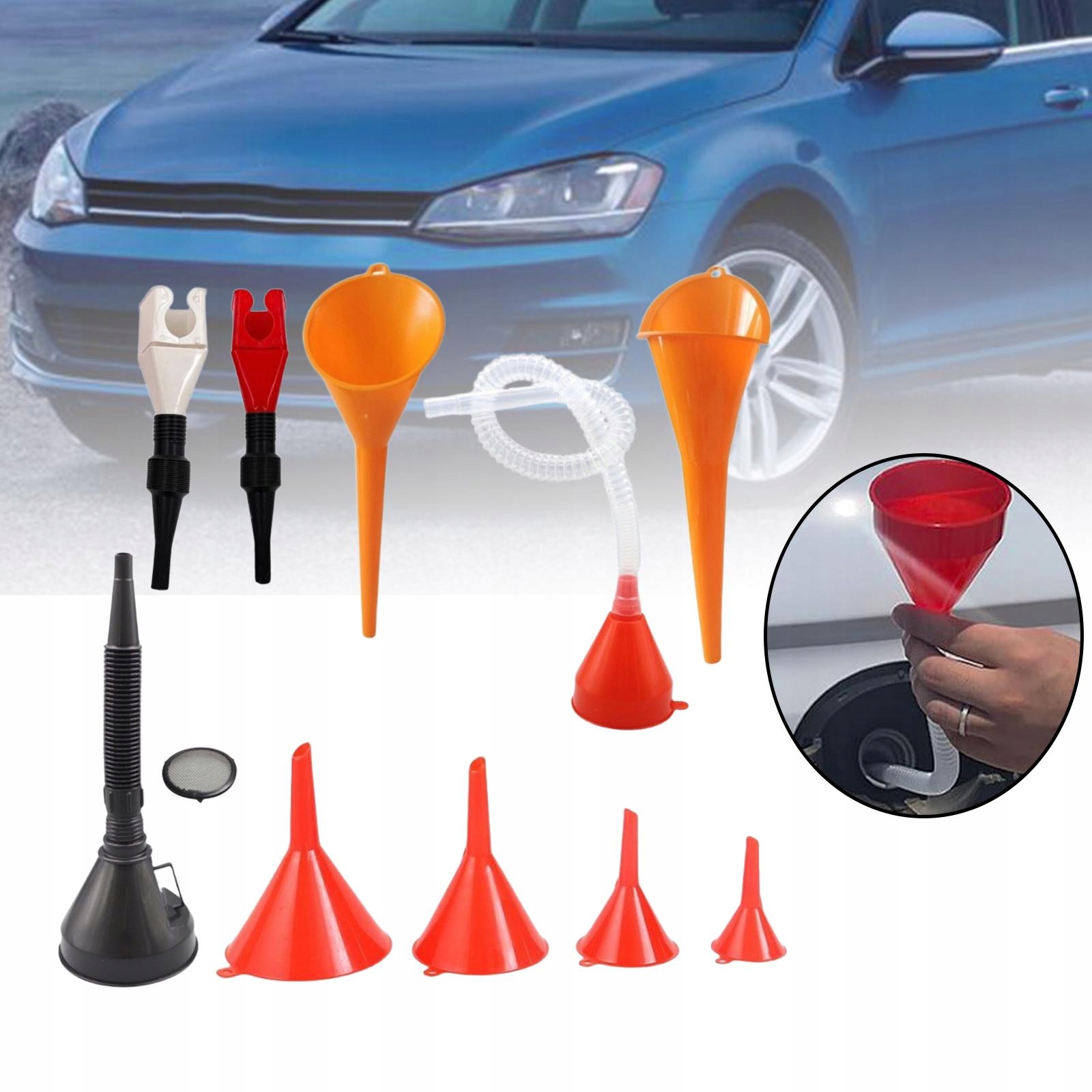 [Пакет]: Включає 10 лійок, наприклад 1 масляну воронку з широким отвором, з гнучким подовжувальним шлангом форсунки та сітчастим екраном, подовжується масло лійка, лійка зі шлангом, велика, середня та мала лійка тощо