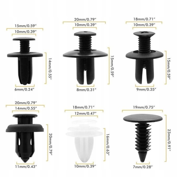 Цей набір шпильок оббивка містить 100 шт. затискачі 6 різних розмірівдля кріплення автомобільної оббивки, крил, бамперів, дверей.