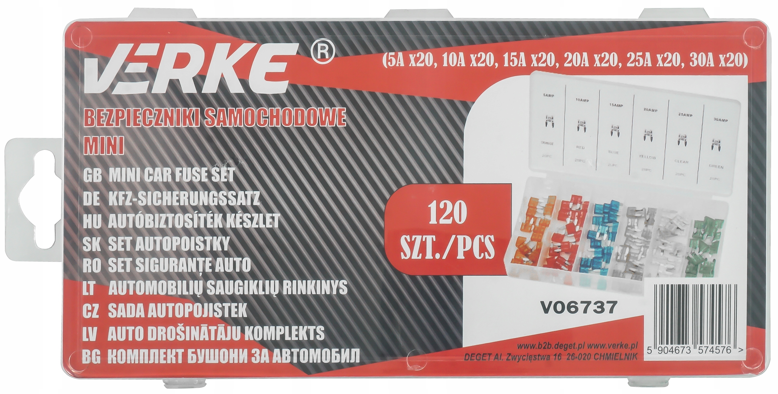 ЗАПОБІЖНИКИ MINI SLAVE CAR 5A-30A 120 ШТ. VERKE