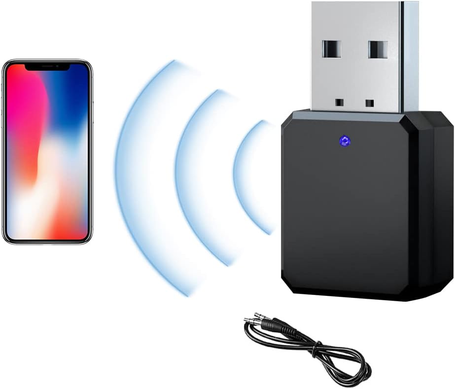 4 [Вільні руки]: побудований мікрофон. Розмовляючи з мобільним телефоном, ви можете здійснювати телефонні дзвінки без використання рук за допомогою мікрофона приймача Bluetooth для полегшення керування автомобілем та офісом. [Підключити та використовувати]: Немає необхідності встановлювати драйвери / програмне забезпечення. Bluetooth можна швидко адаптувати та підключити. Парування: синя лампа управління спалахує, а це означає, що випаровування успішно закінчилося: синя лампа управління увімкнено. [Хороша продуктивність]: Bluetooth пристрій для USB -автомобіля завдяки вдосконаленій чіпсеті та вдосконаленій технології, приймач забезпечує кращу продуктивність, підтримує версію BT5.1, A2DP, AVRCP Bluetooth, відстань передачі може досягти 10 метрів, стабільно, без зволікань. [Остання версія Bluetooth 5.1]: наш USB -адаптер автомобіля для розетки Bluetooth з вбудованим мікросхемою Bluetooth 5.1, з подвійним виходом USB / AUX, пристрої без функції USB також можуть надсилатись у режимі AUX, швидше передачі без затримок.✅ ✅pameters продукту