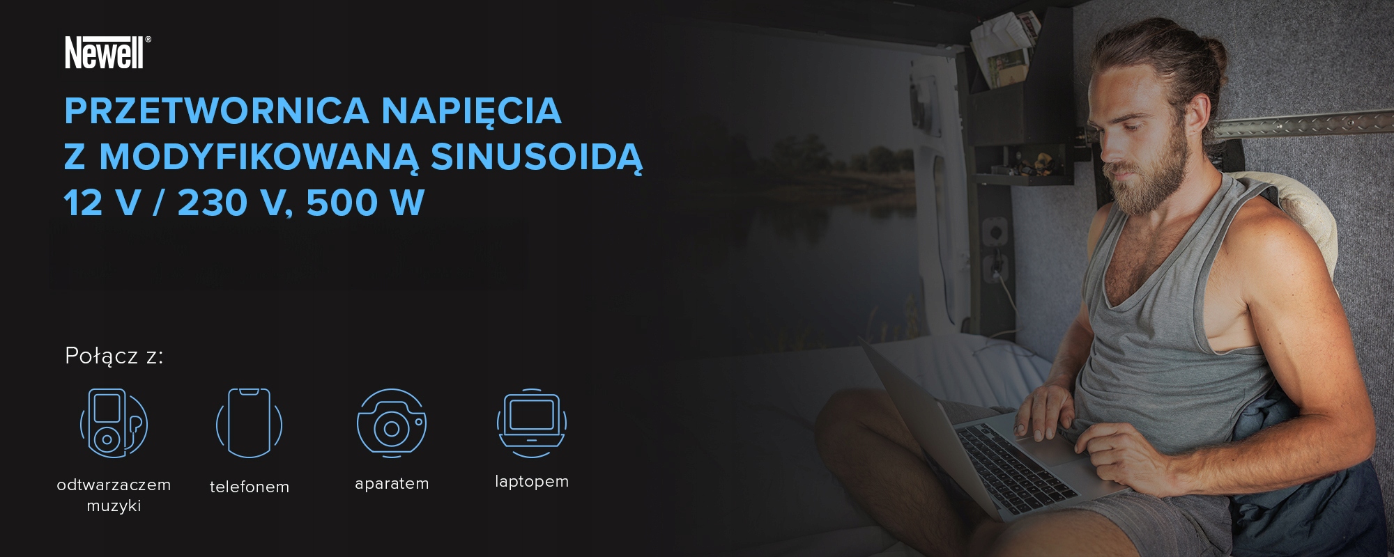 Доступ до електрики розетки під час подорожі можуть бути проблематичними. Обігрівач, чайник або ноутбук - це пристрої, які часто неможливо підключити до павербанка або розетки автомобільного прикурювача. Тоді на допомогу приходить перетворювач напруги Newell з модифікованою синусоїдою - 12 В / 230 В, 500 Вт. Вам не обов'язково купувати нові електронні пристрої, щоб використовувати їх у подорожі. Інвертор дозволить живити обладнання, яке раніше було сумісним лише з традиційними електричними розетками, від акумулятора чи автомобільного прикурювача.