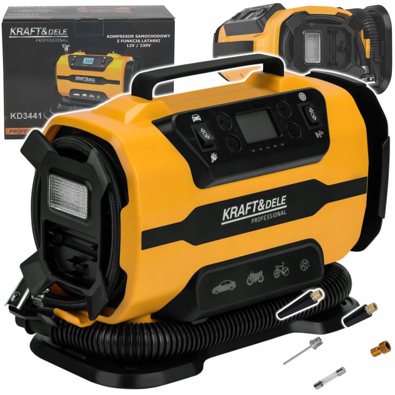 ✅Сучасний, мобільний та багатофункціональний пристрій, призначений для швидкого накачування автомобіля, мотоцикла та велосипеда шини, а також м'ячі, матраци та інші надувні аксесуари. Завдяки подвійному джерелу живлення - 12 В постійного струму (розетка прикурювача) і 230 В змінного струму - він добре працюватиме як у подорожі, так і в гаражі чи майстерні.