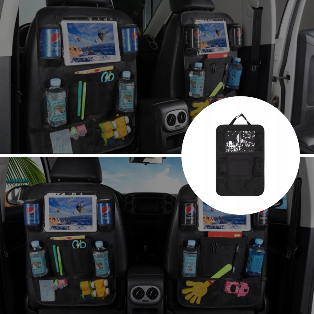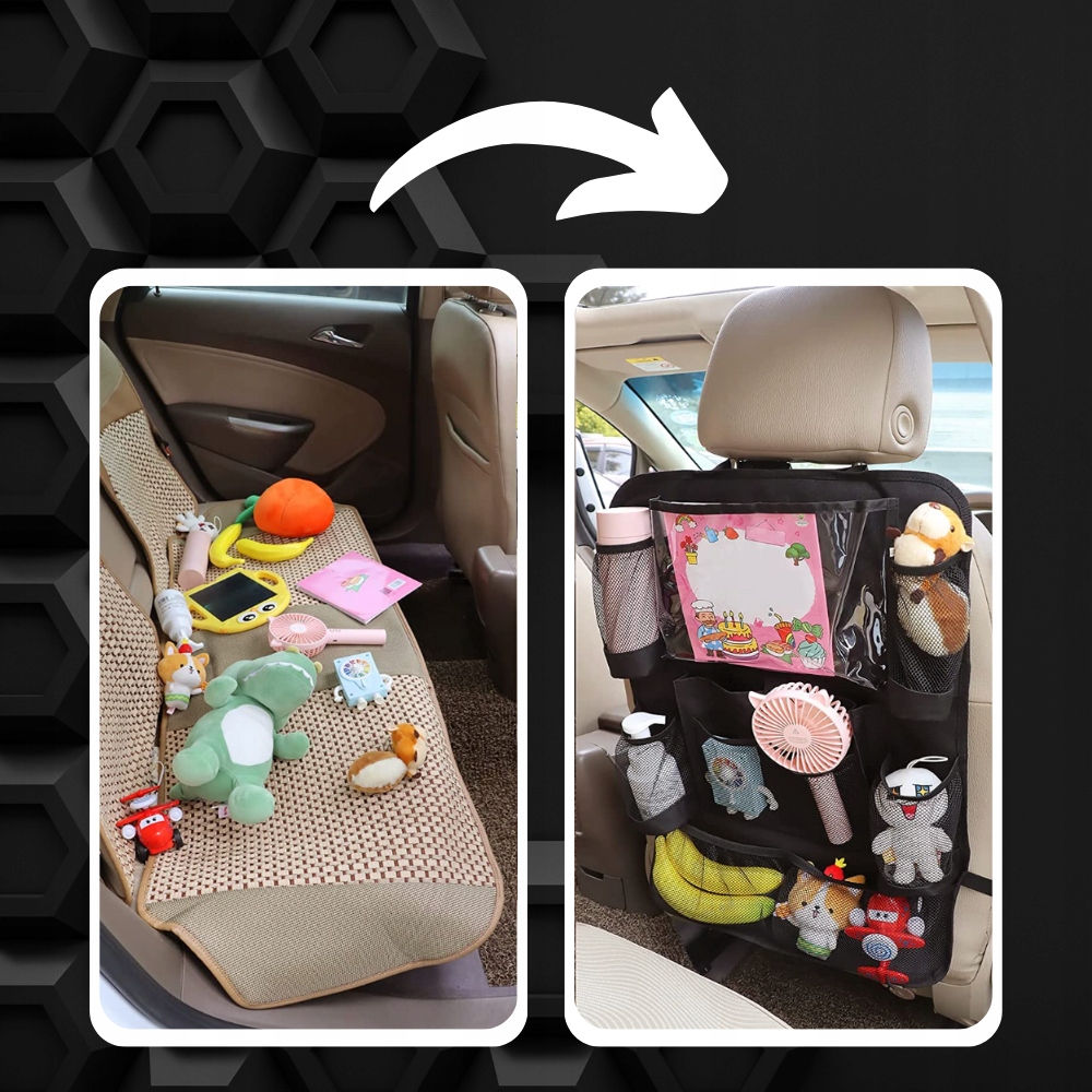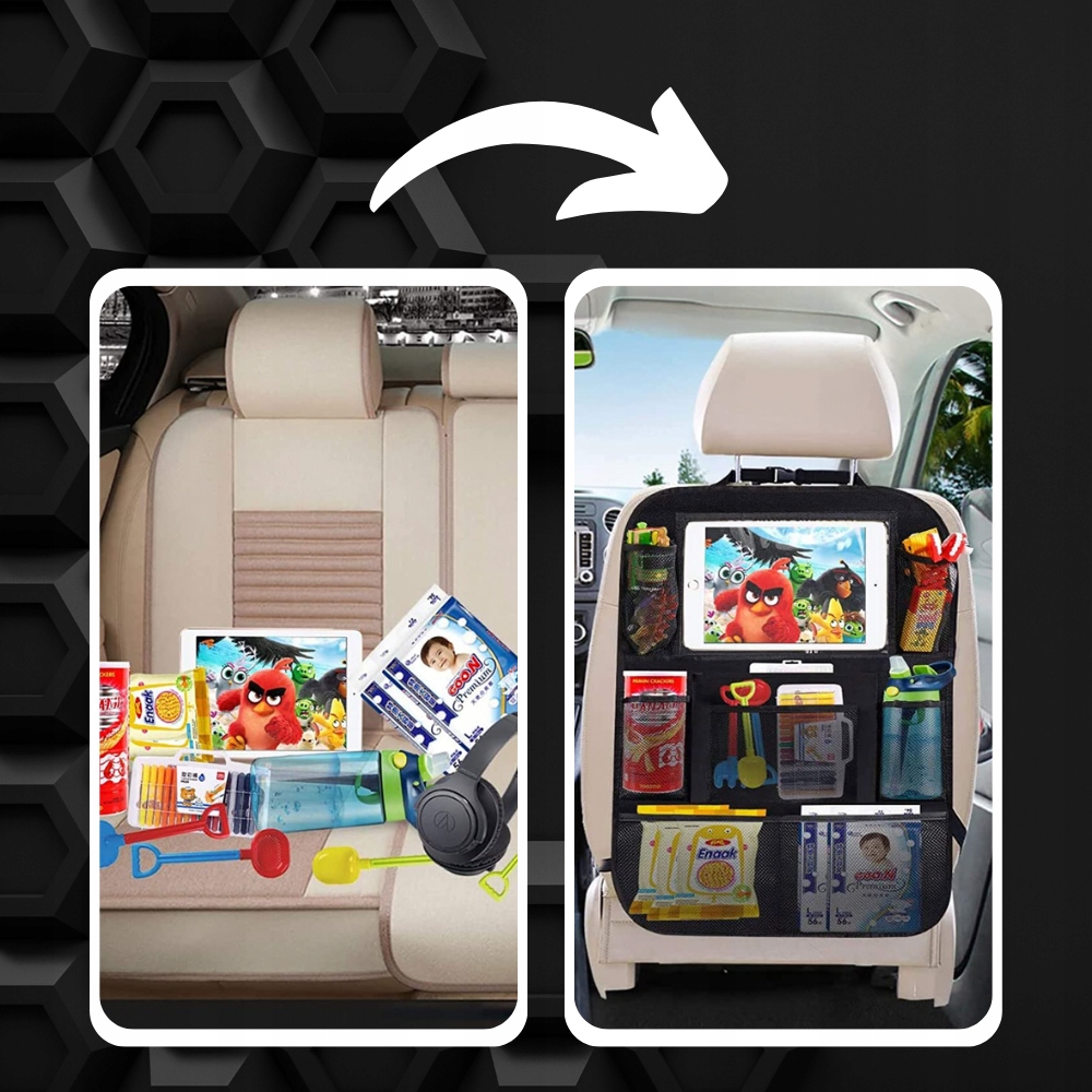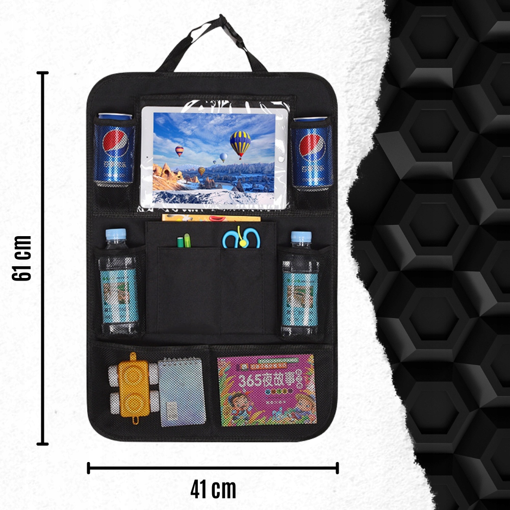 Цей автомобільний органайзер розміром 60 см x 40 см повністю закриє заднє сидіння. Кілька відділень допомагають упорядкувати предмети, такі як дитячі іграшки, планшети, телефони, журнали b>, пляшки з водою тощо, а не залишати їх розкиданими. Просто насолоджуйтесь своїм охайним і організованим простором.