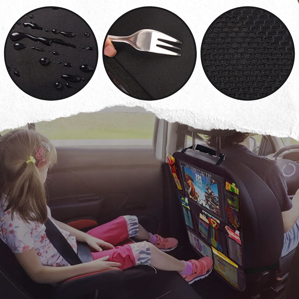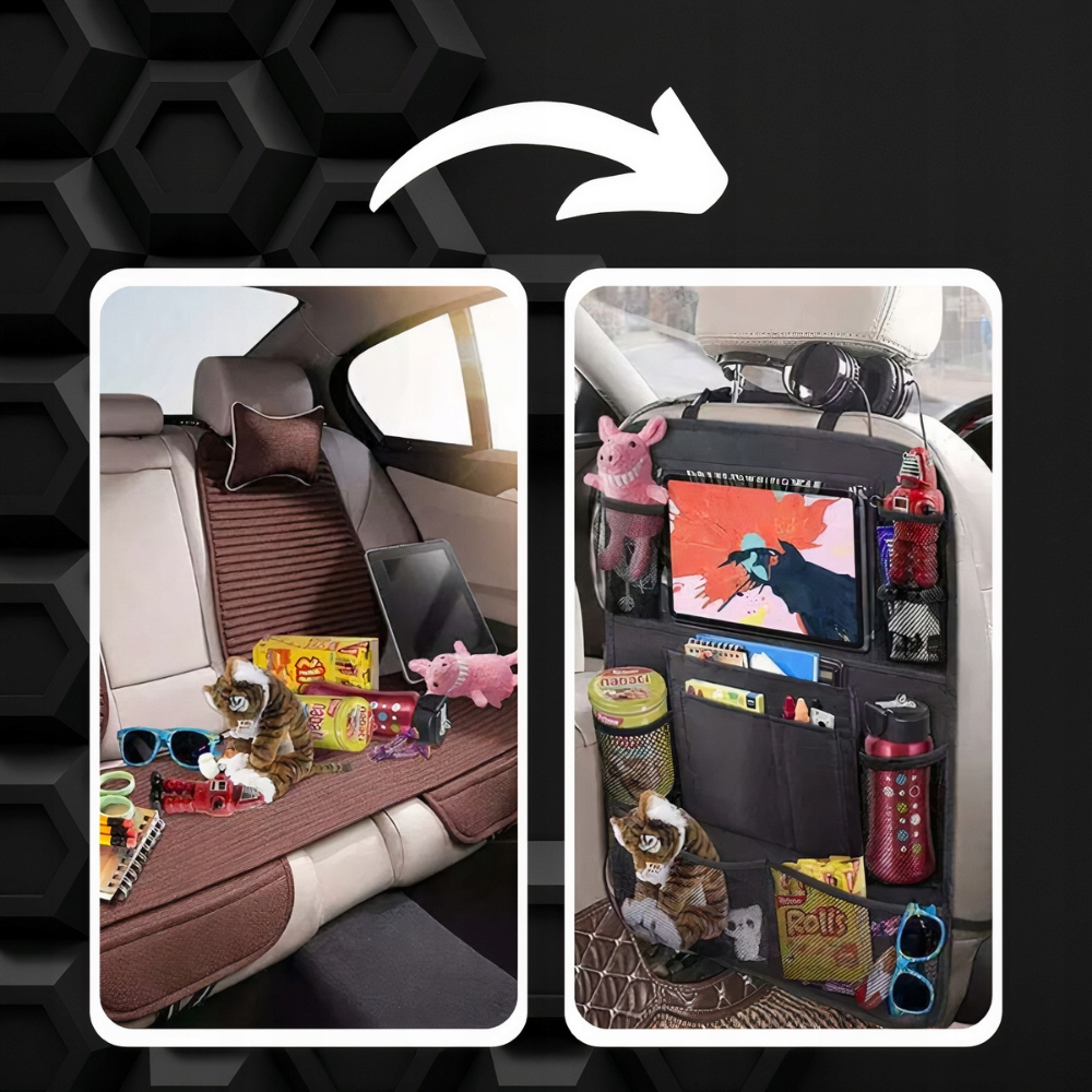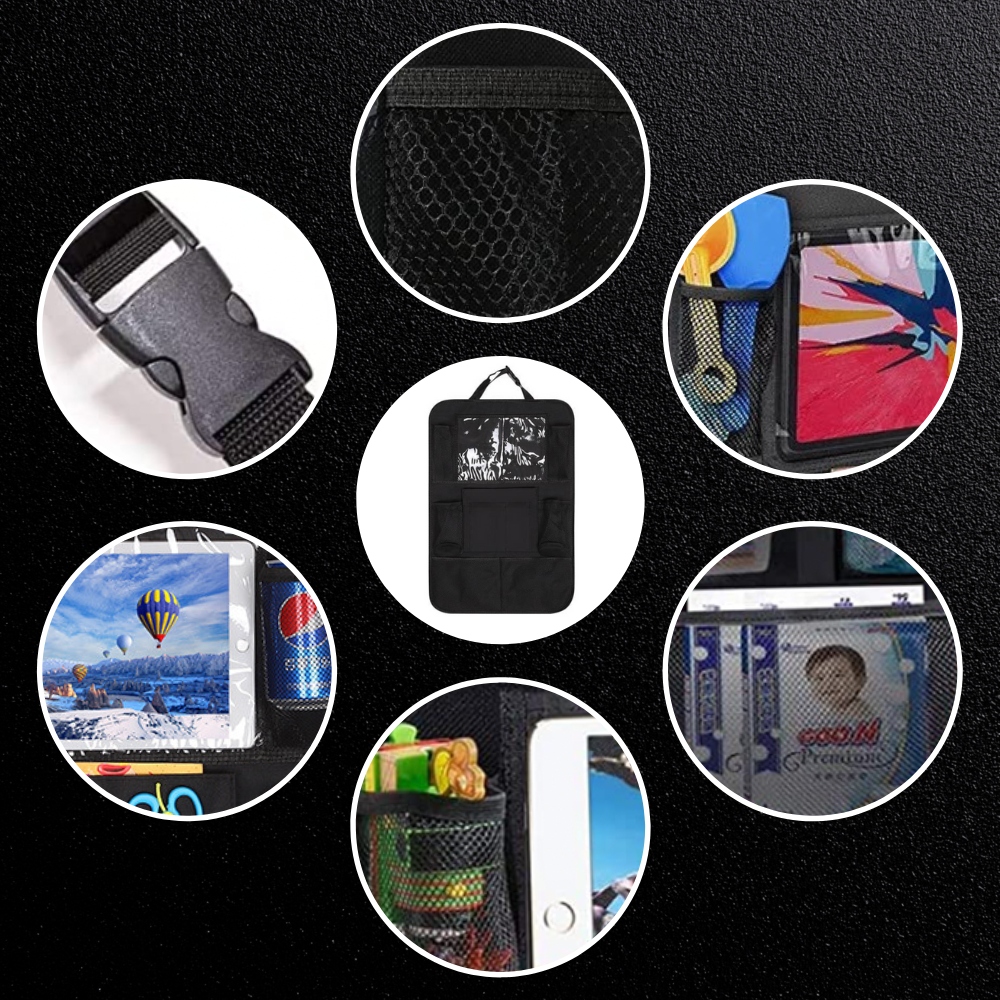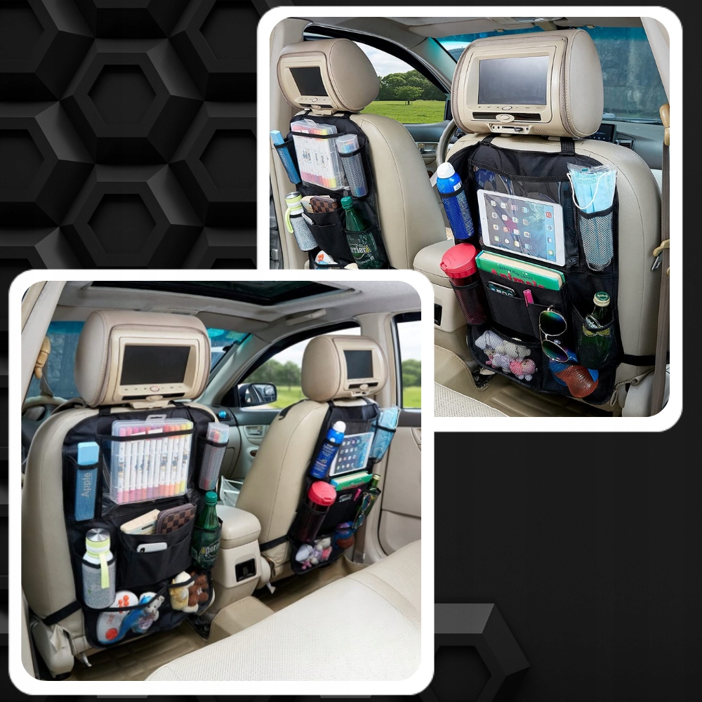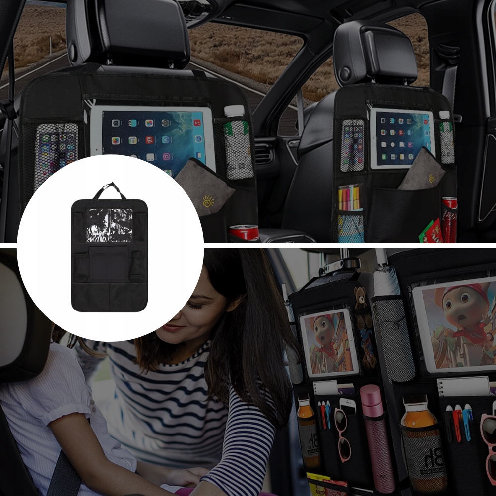 Цей автомобільний органайзер розміром 60 см x 40 см повністю закриє заднє сидіння. Кілька відділень допомагають упорядкувати предмети, такі як дитячі іграшки, планшети, телефони, журнали b>, пляшки з водою тощо, а не залишати їх розкиданими. Просто насолоджуйтесь своїм охайним і організованим простором.
