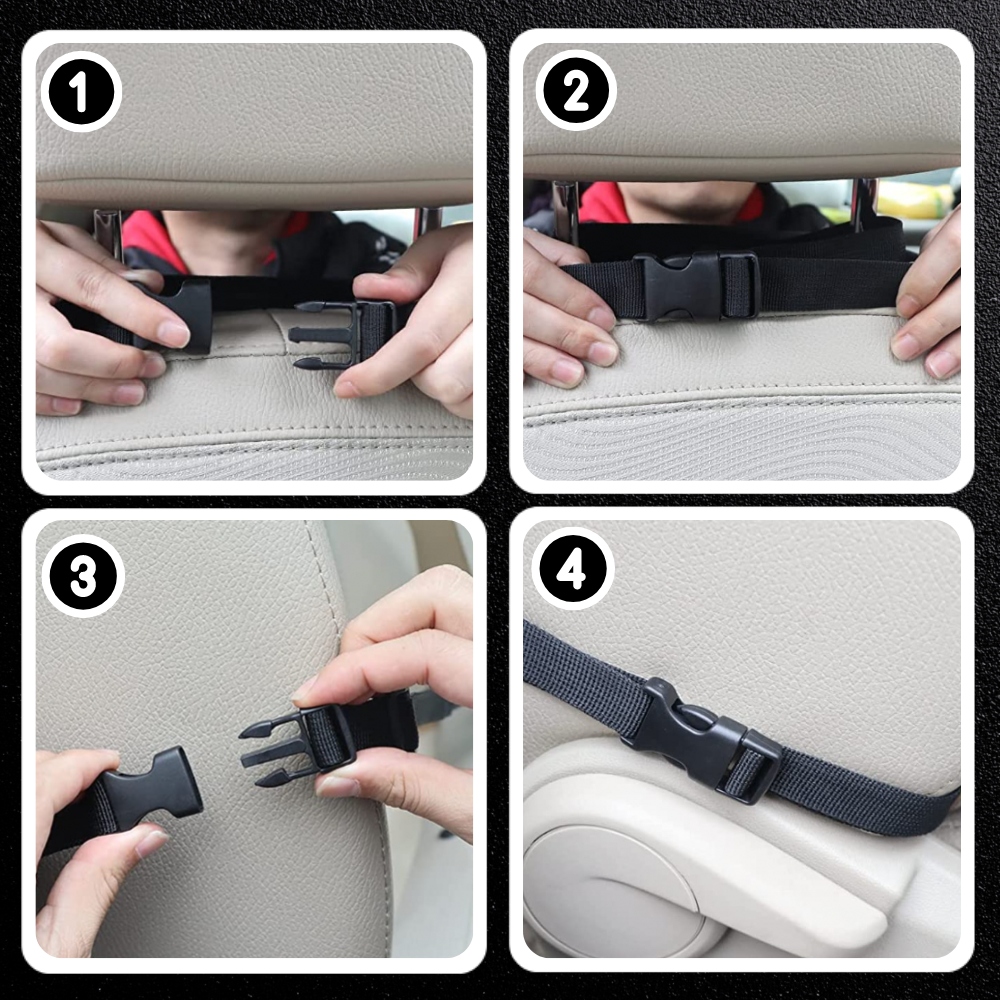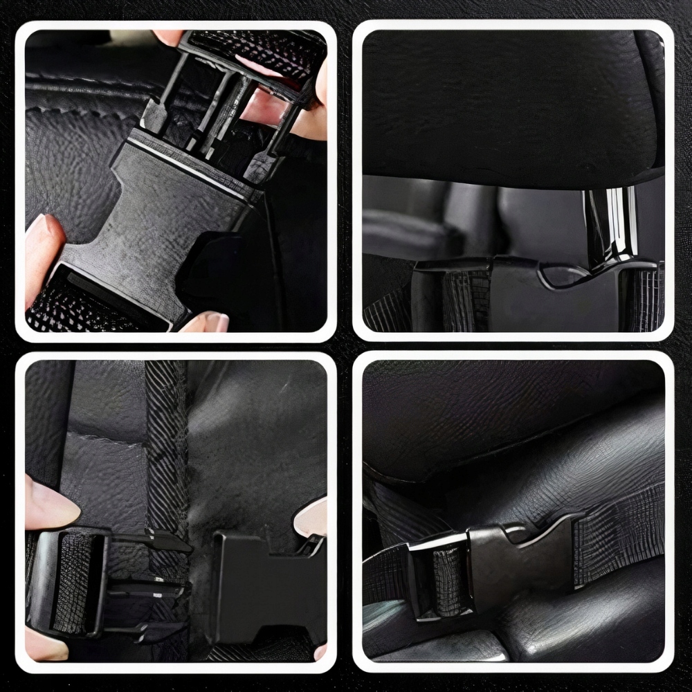 Органайзер заднього сидіння має регульовані пряжки, сливові пряжки, два гачки та міцний ремінь для максимальної стабільності відділення для речей на задньому сидінні . Встановлення дуже просте та займає менше 5 хвилин.