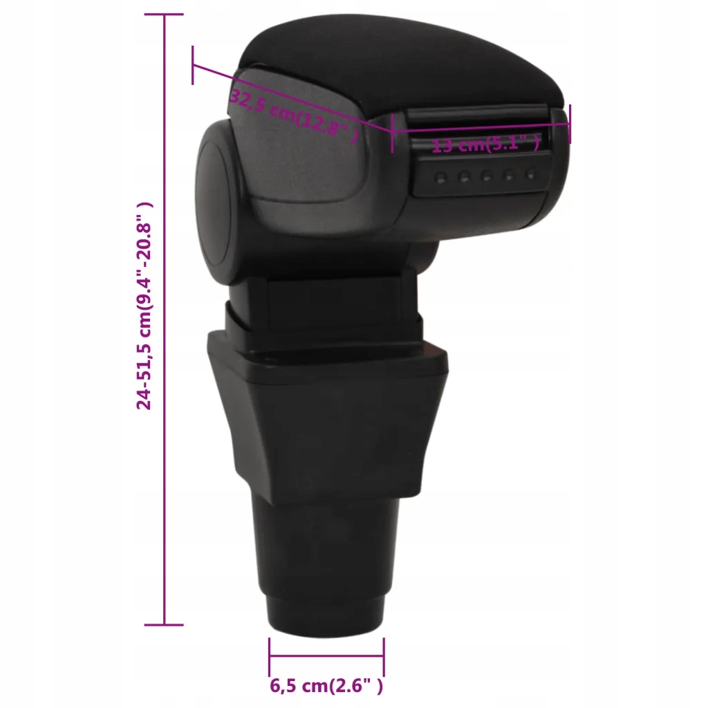 Автомобільний підлокітник з місцем для зберігання, чорний, 13x32,5x(24-51,5) см