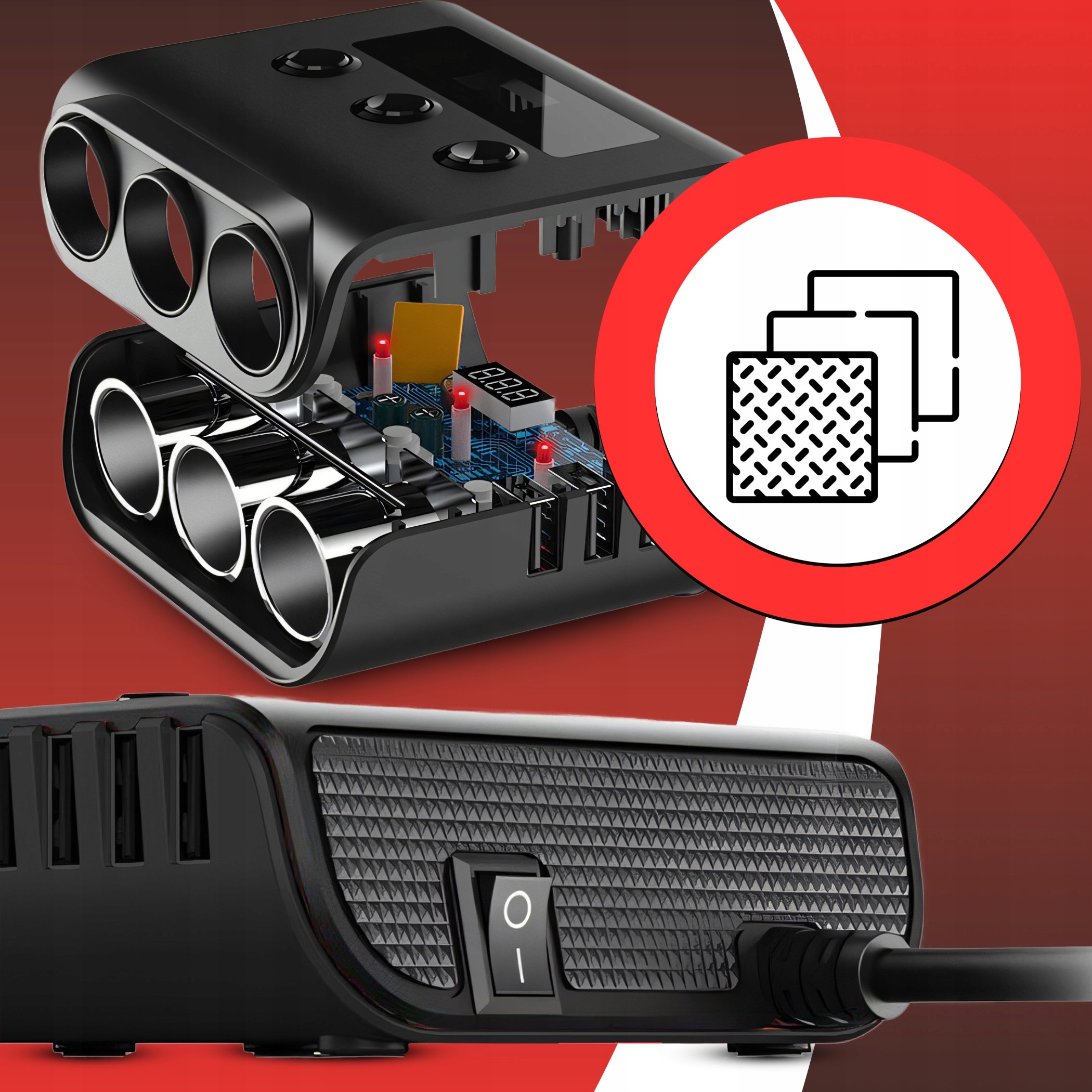 ✍️ Автомобільний розподільник ☺️ Розміри: компактний дизайн ✔️ Джерело живлення: DC 12-24V ☀️ Вихід USB: 5V/3.6A ✏️ Система захисту від перенапруги ✉️ 3 перемикачі живлення для додаткових розеток прикурювача ♥️ Дисплей з вольтметром: цифровий LED ♠️ Довжина кабелю: прибл. 65 см ✔️ Запасний запобіжник ⭐