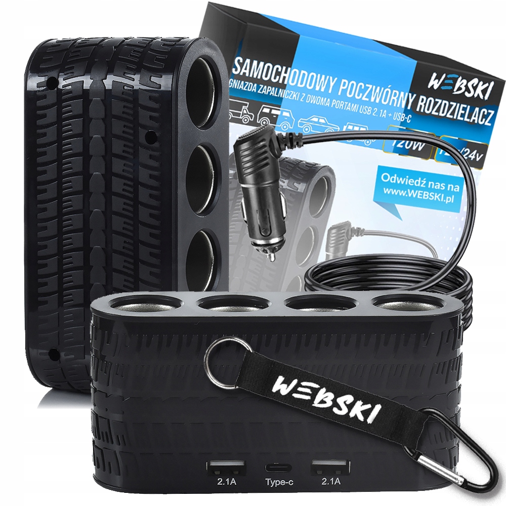 АВТОМОБІЛЬНИЙ СПЛІТТЕР ПРИПАЛЮВАЛЬНИКА QUAD 2X USB+1X TYPE C WEBSKI