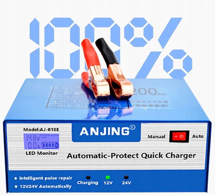 Мікропроцесор AJing AJ-618E-це сучасний пристрій, призначений для зарядки та обслуговування акумулятора 12 В та 24 В. Завдяки інтелектуальному регулюванню та регенерації напруги він ідеально підходить для пасажирських автомобілів, вантажних автомобілів, мотоциклів, човнів, сільськогосподарських машин та інших транспортних засобів.