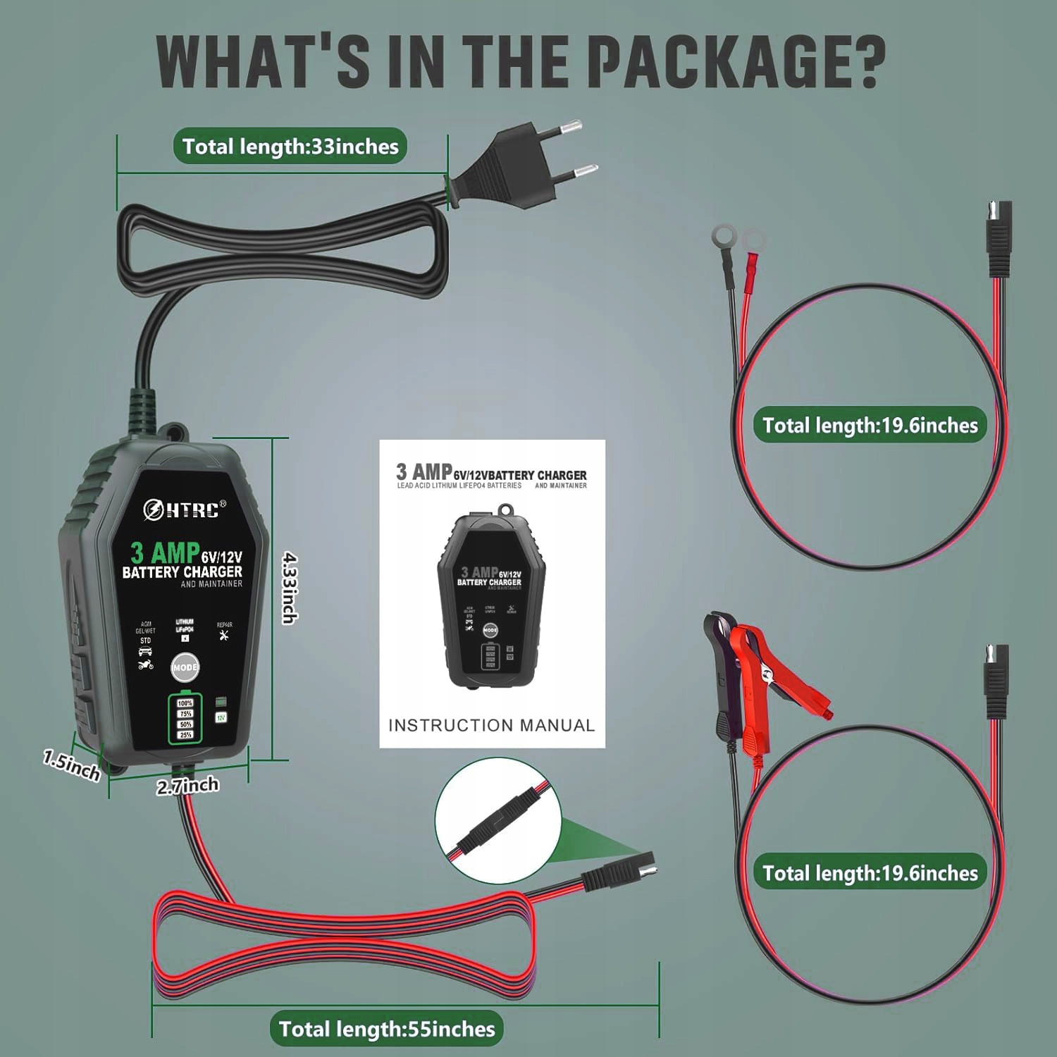 Автомобільний зарядний пристрій, інтелектуальний зарядний пристрій 6V/12V 3A
