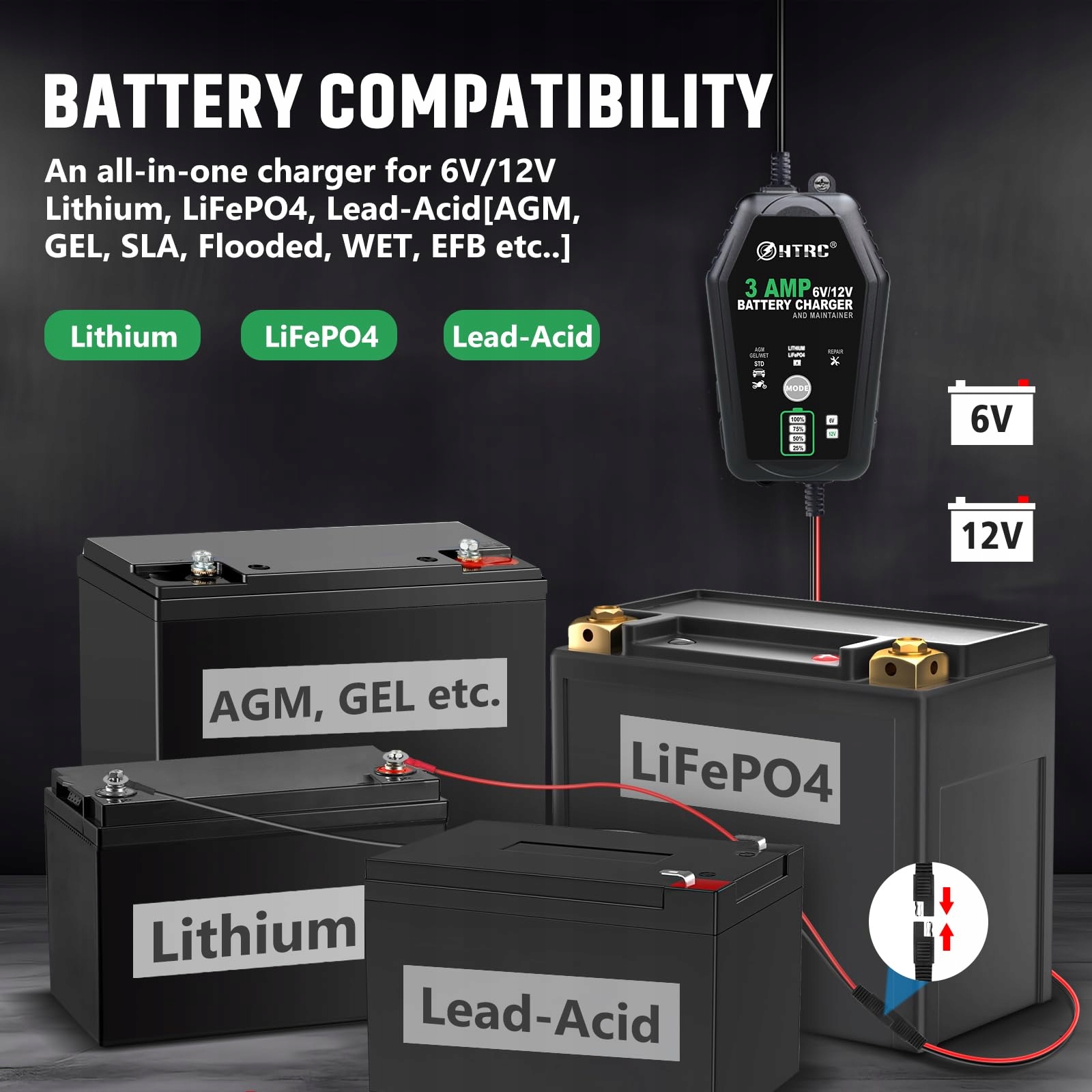 ✅ Призначено для свинцево-кислотних акумуляторів 6 В і 12 В для автомобілів і мотоциклів.