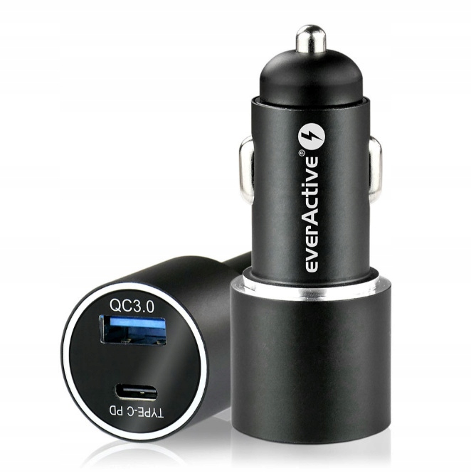 Зарядний пристрій оснащено швидким роз'ємом USB і USB-C загальною потужністю 36 Вт, до якого можна підключити, наприклад, два телефони одночасно. Це ідеальний варіант, якщо ви подорожуєте з пасажиром або маєте більше одного телефону. З зарядним пристроєм everActive ви можете бути впевнені, що батарея завжди буде заряджена, щоб ви могли вільно розмовляти та використовувати програми.