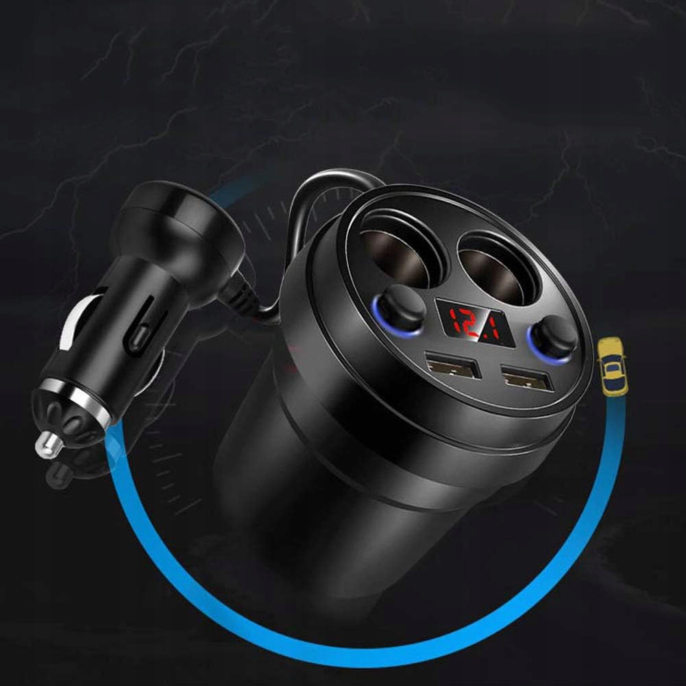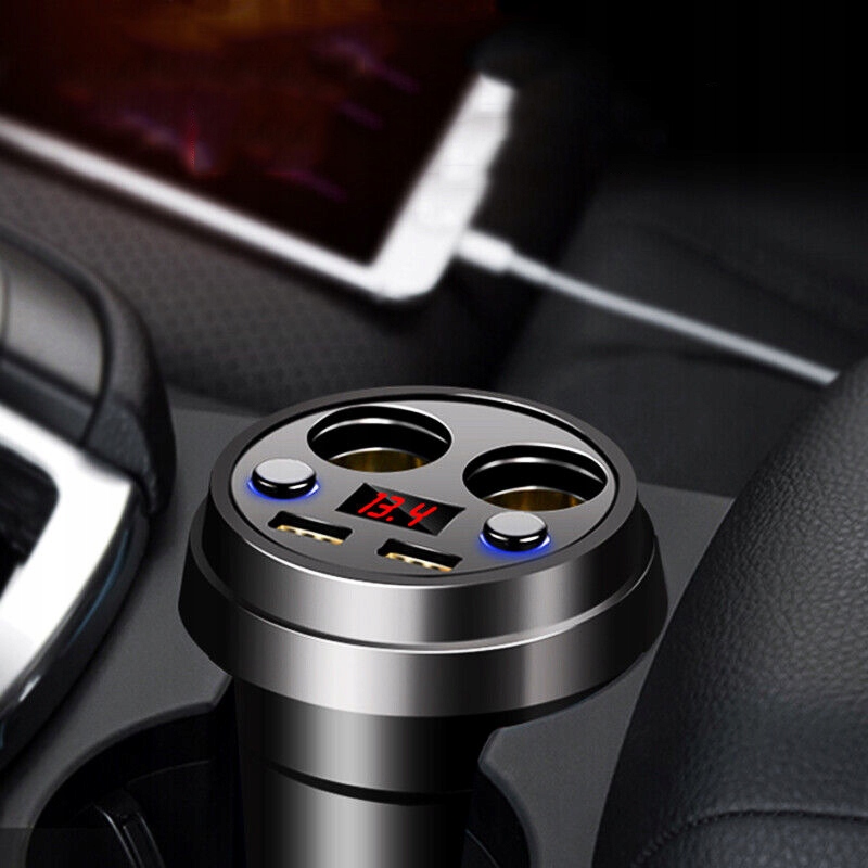 Багатофункціональний автомобільний зарядний пристрій, подвійний отвір для прикурювача, подвійний USB, моніторинг напруги в реальному часі, не вибирати модель автомобіля, загальне широка напруга, підходить для багатьох видів моделей, можна використовувати 12 В - 24 В.