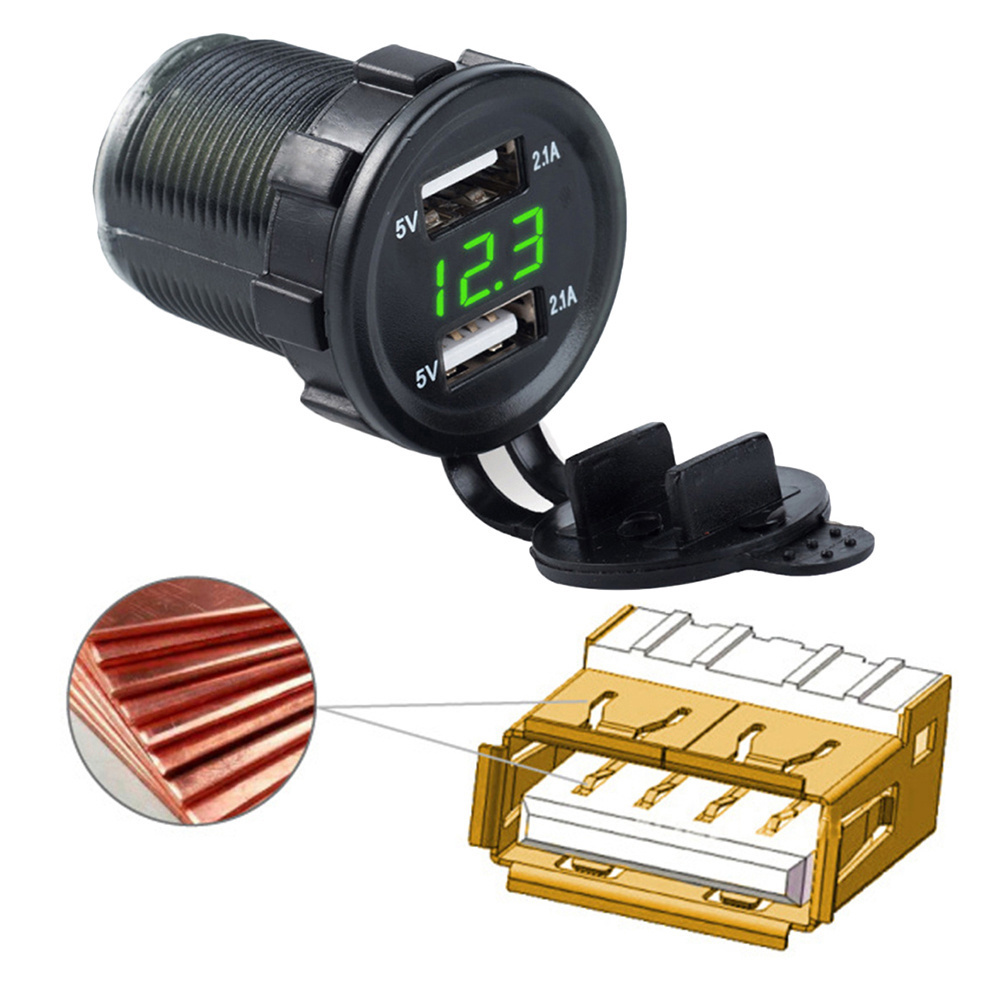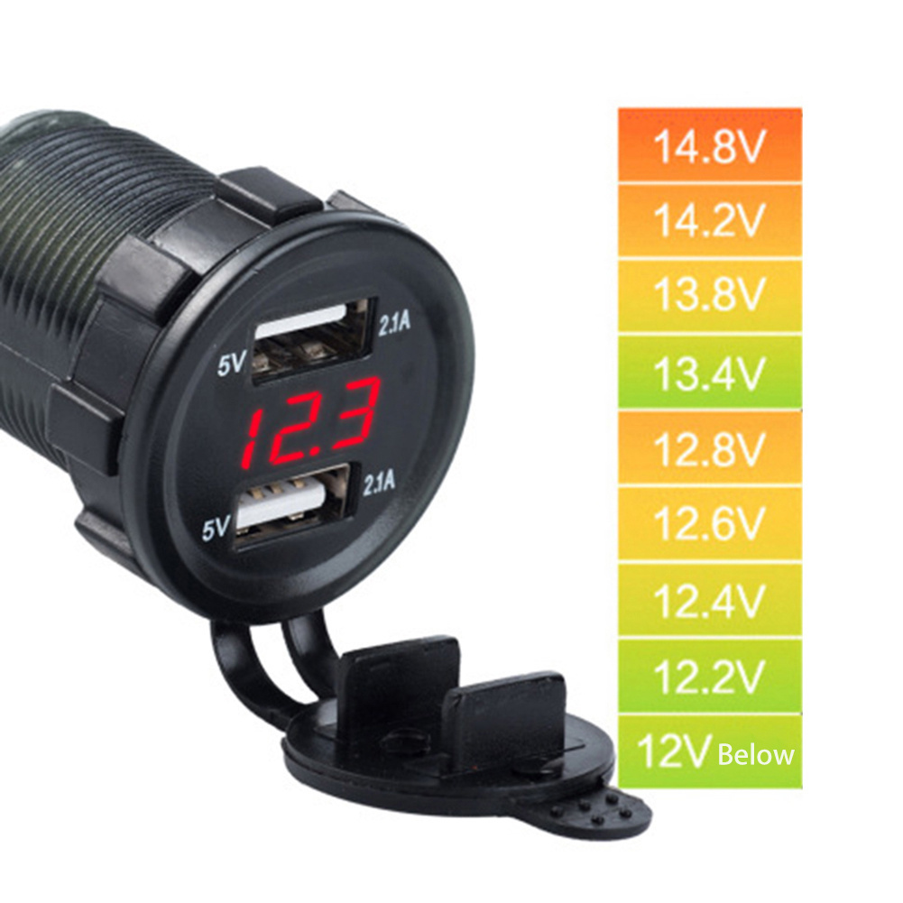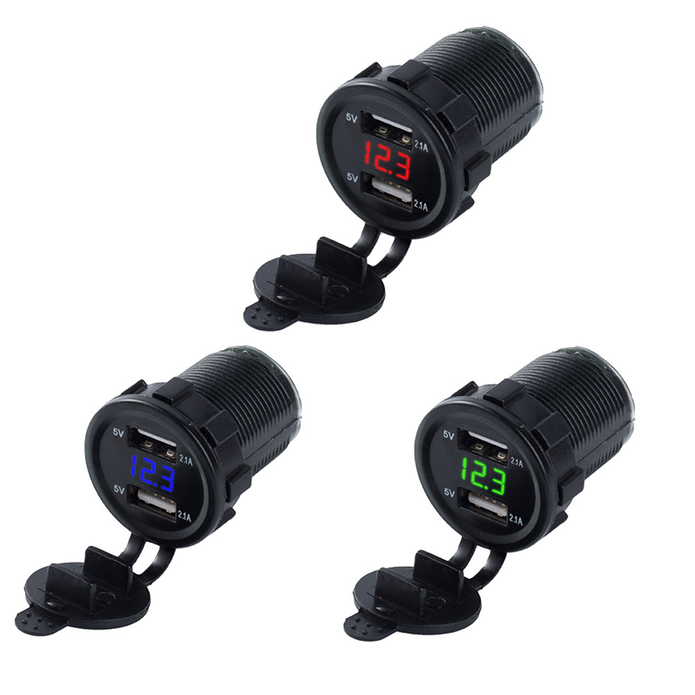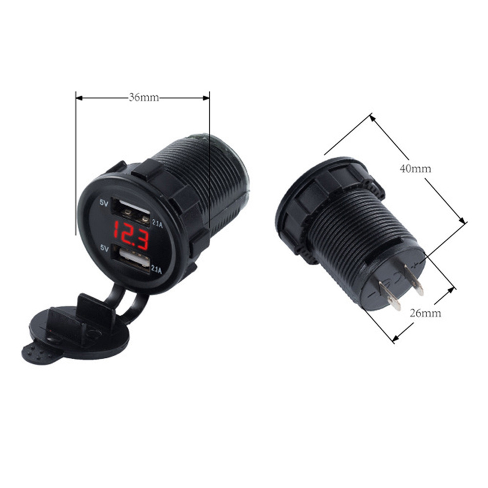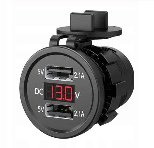 ВОДОСТІЙКИЙ ЗАРЯДНИЙ ПРИСТРІЙ USB 5 В 4,2 А З ЧЕРВОНИМ ВОЛЬТМЕТРОМ