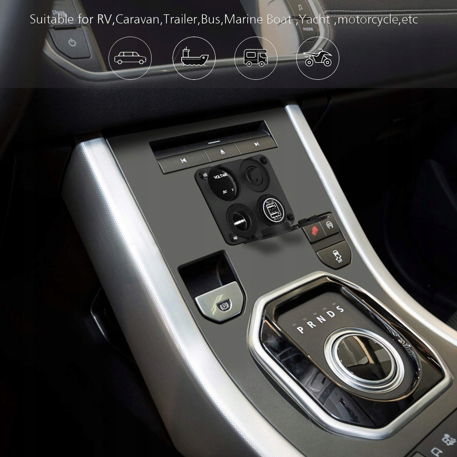 - 1 × Основа з чотирма отворами 1 × Подвійна USB-розетка 1 × Світлодіодний вольтметр 1 × розетка 12В 1 × вимикач