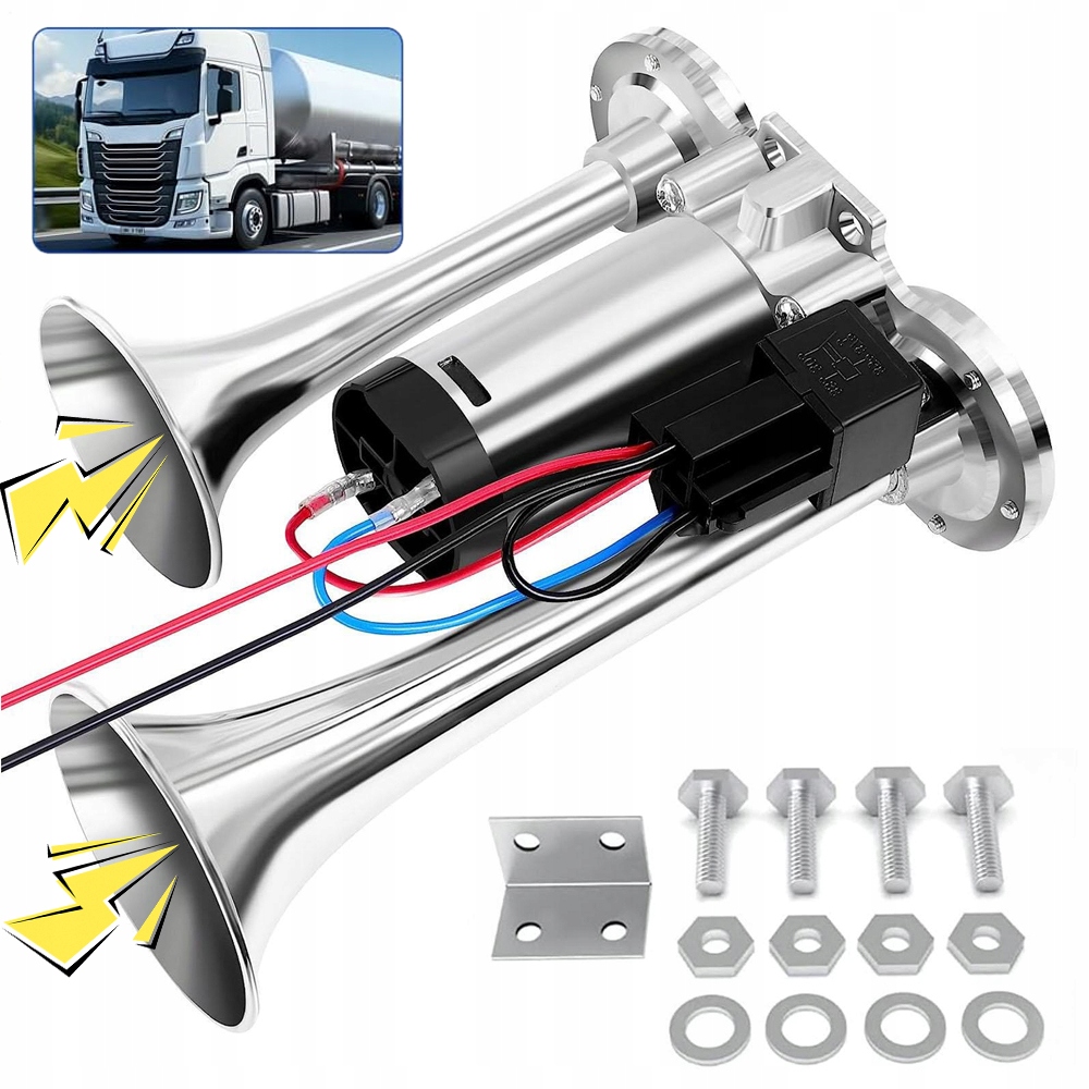 📢📢📢【Надгучний】Повітряний компресор і більша котушка можуть створювати сильніший тиск повітря, завдяки чому подвійний рупор видає голосніший і чистіший звук. Рівень звуку 600 дБ, стабільна робота та висока ефективність роботи.