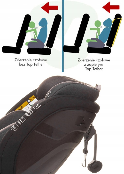 4 4Ремінь і гачок Верхній тетер запобігає обертанню та нахилу сидіння під час лобового зіткнення та додатково стабілізує сидіння, встановлене на гачках Isofix