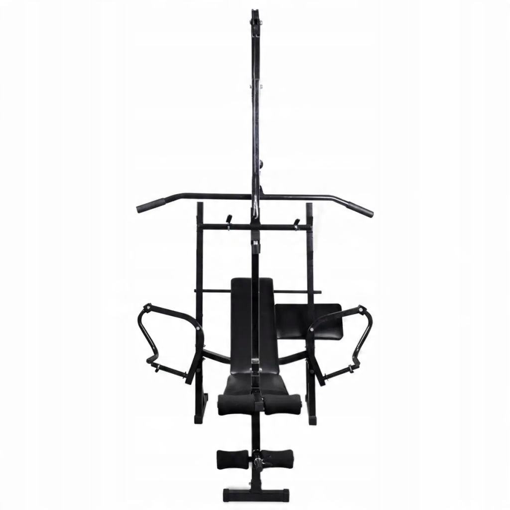 Ławka do ćwiczeń ze stojakiem, sztangą i hantlami,