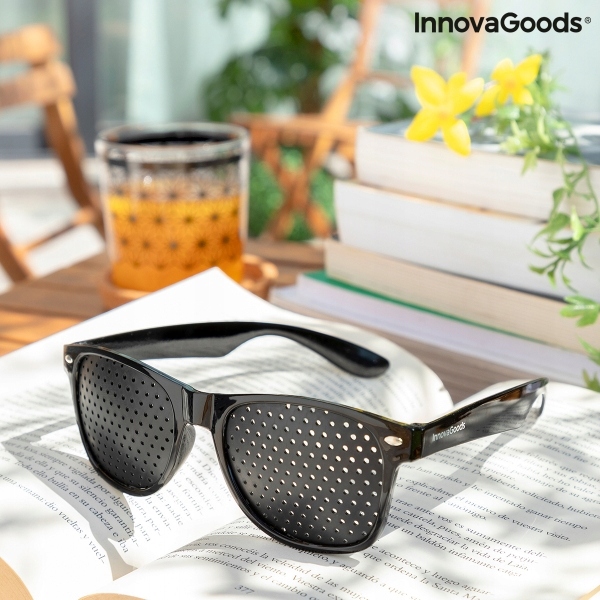 Сітчасті окуляри Easview InnovaGoods дозволяють тренувати око для покращення гостроти зору на основі принципу обскури. Їхні непрозорі лінзи з невеликими отворами дозволяють бачити, одночасно зменшуючи розсіювання світла, що сприяє чіткішому зору, оскільки світлові промені потрапляють в очі перпендикулярно, блокуючи більшу частину розбіжних світлових променів, що призводить до меншої різкості.