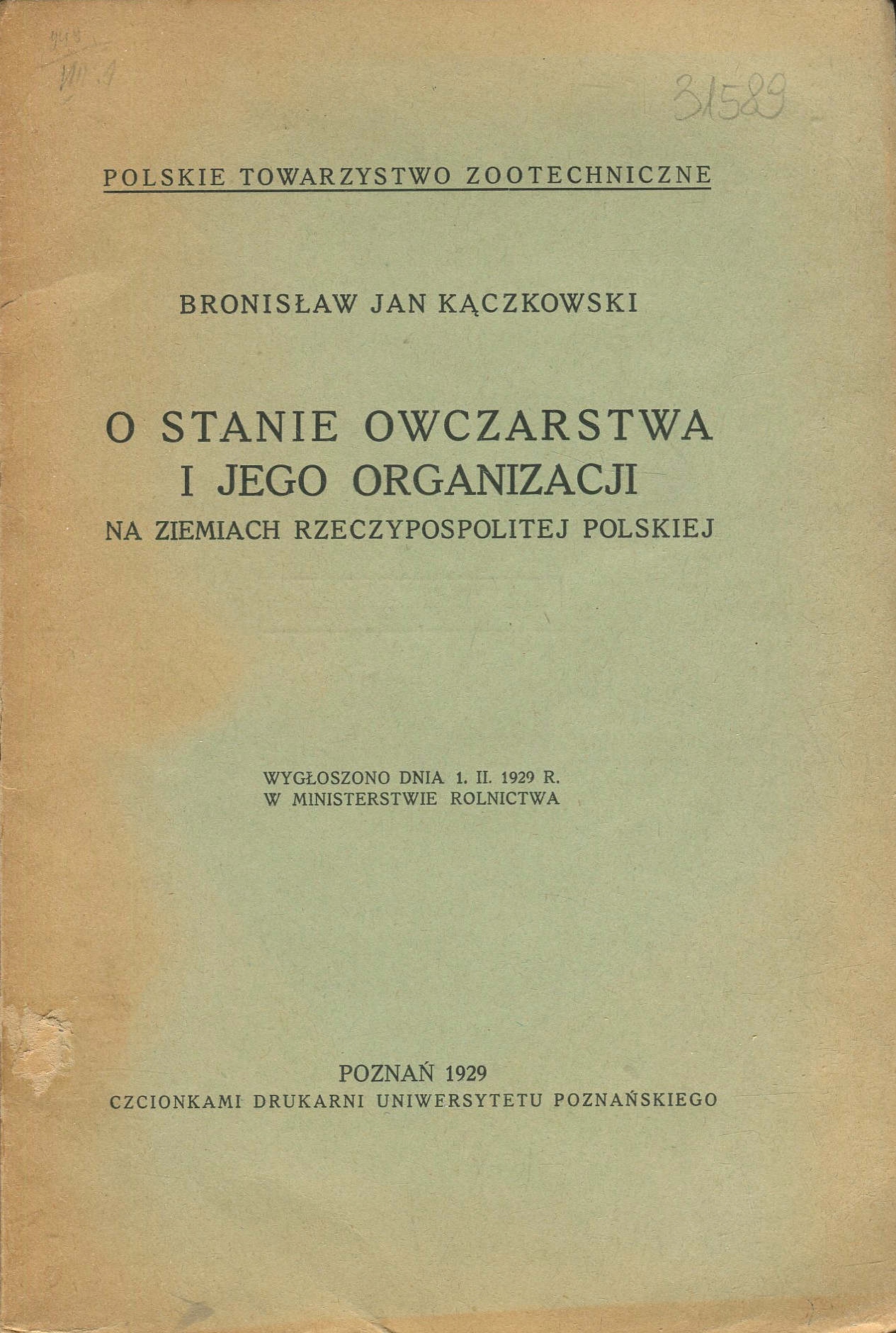 Б. Кончковський - Про стан вівчарства та його організацію на землях Польської Республіки, 1929 р.