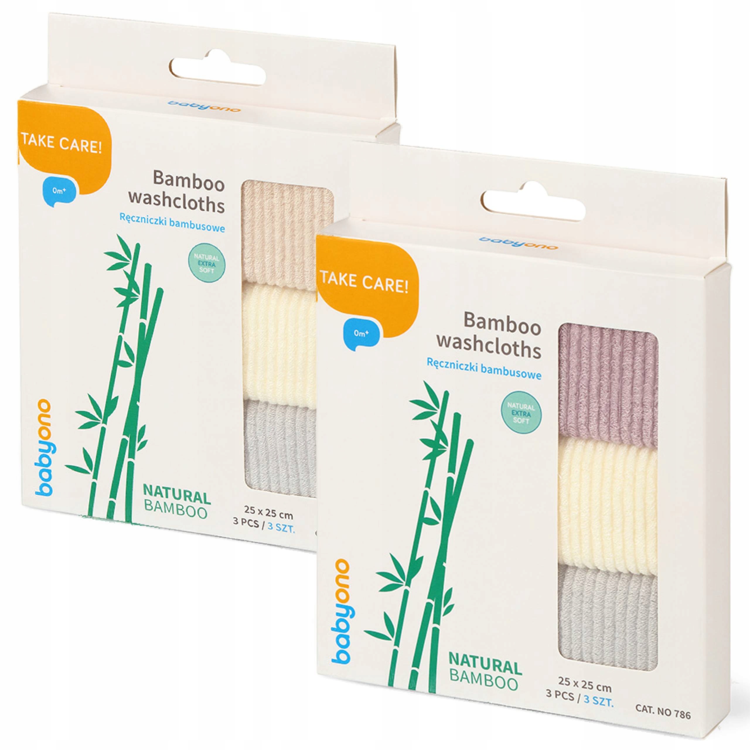 BABYONO BAMBOO TOWELS НАТУРАЛЬНИЙ БАМБУК мочалки х3 шт