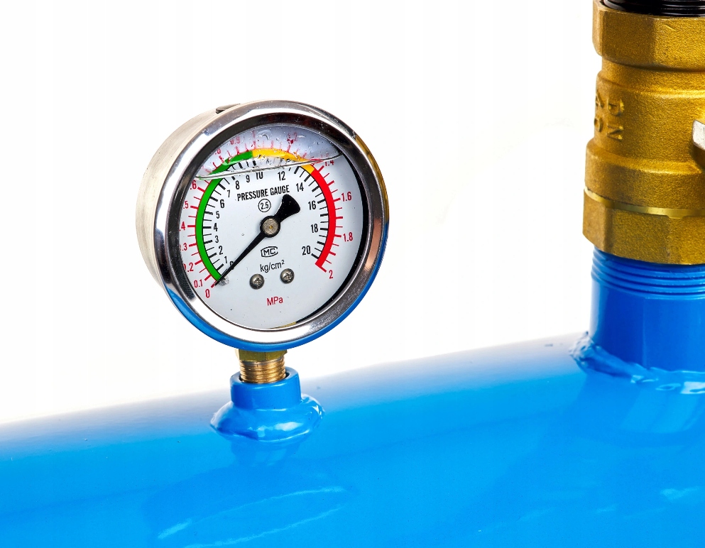 - На резервуарі є манометр, який показує поточний тиск закачуваного повітря.