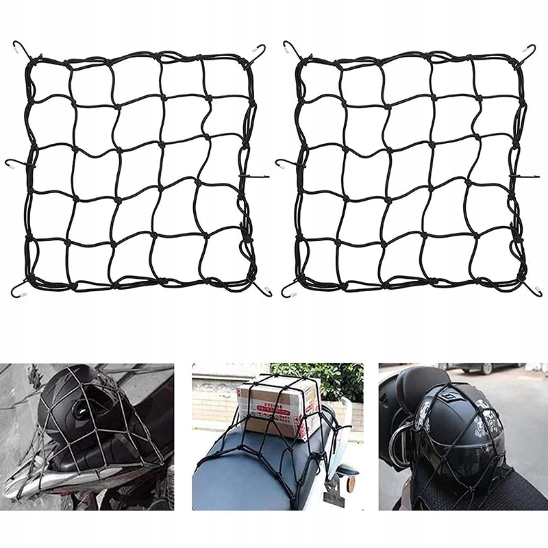 Гумова сітка з гачками для транспортування багажу під час їзди на мотоциклі, велосипеді чи скутері. Ідеальне рішення для транспортування чи зберігання шолома, рюкзака чи покупок.