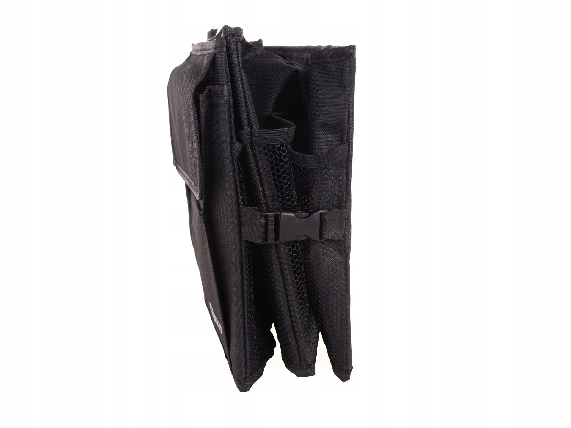 Ідеальне доповнення до обладнання вашого автомобіля. Він дозволяє підтримувати ідеальний порядок в багажнику, забезпечуючи легкий доступ до аксесуарів, інструментів і покупок. Практична автомобільна сумка-багажник виготовлена з міцного матеріалу стриманого рівномірного кольору.