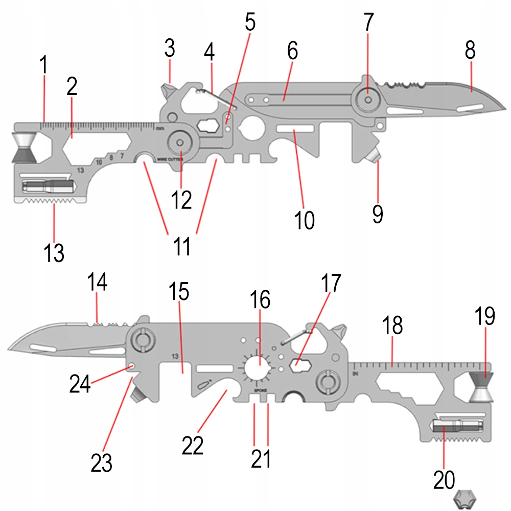 МУЛЬТИІНСТРУМЕНТ AEROGOGO КИШЕНЬКИЙ НІЖ, ГАЙКОВІ КЛЮЧІ, ВИКРУТКИ тощо